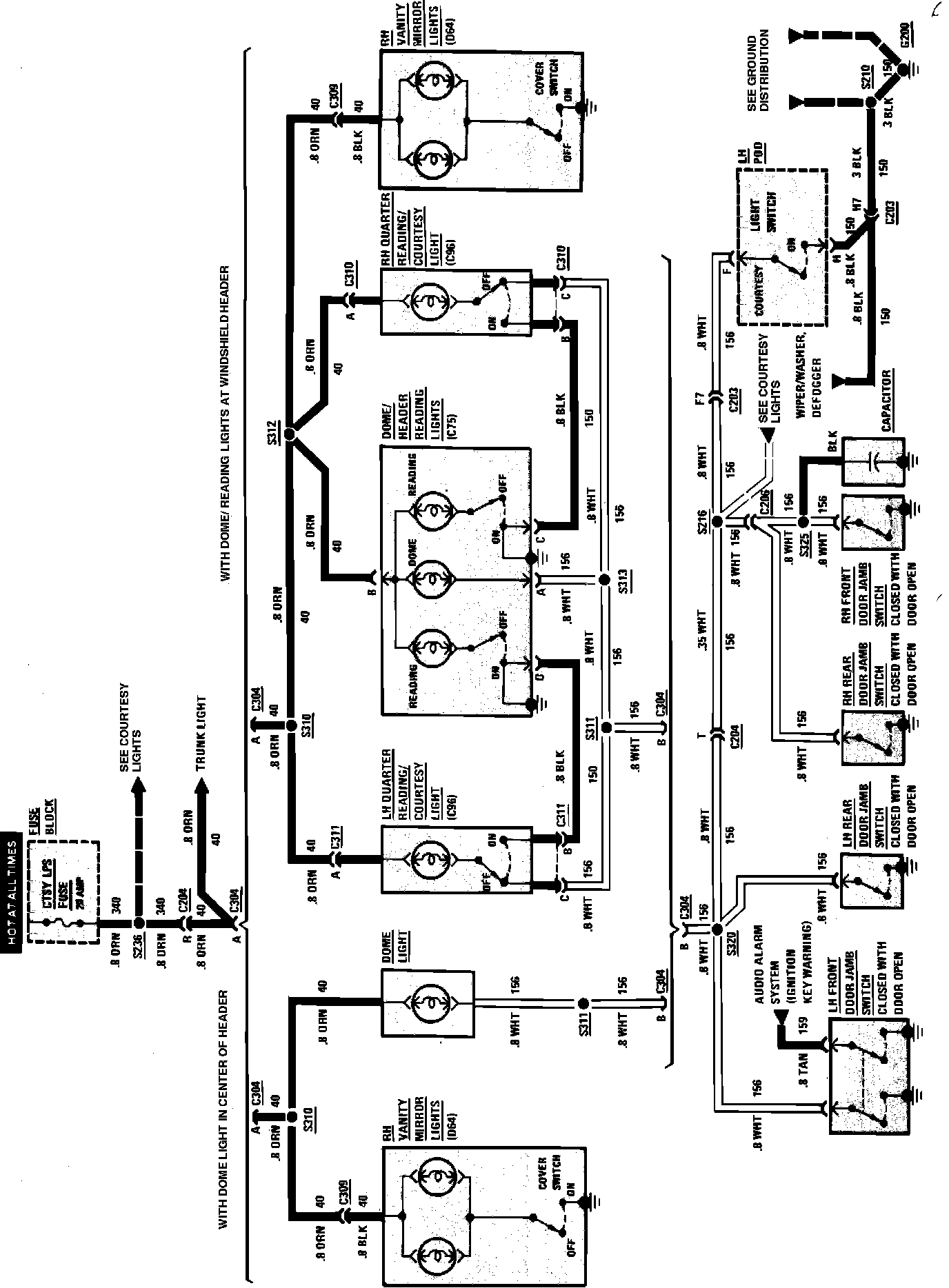 Interior Lights Wiring Circuit (Dome, Reading, Vanity) W/Reading Lights: