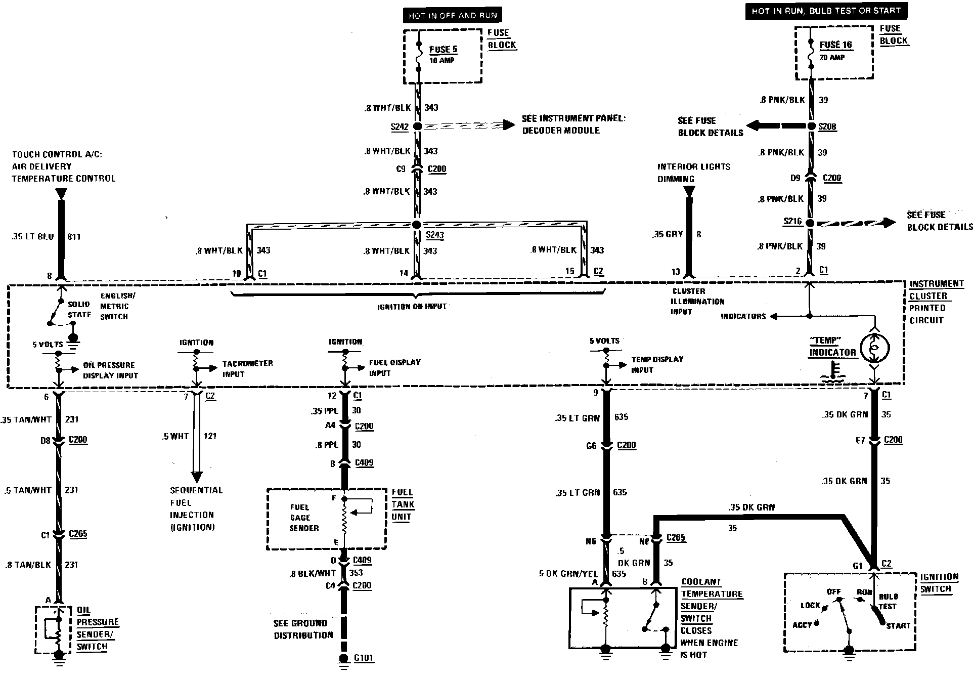 Instrument Panel Coolant Temperature Indicator & Digital Display Wiring Circuit. W/Digital Cluster: