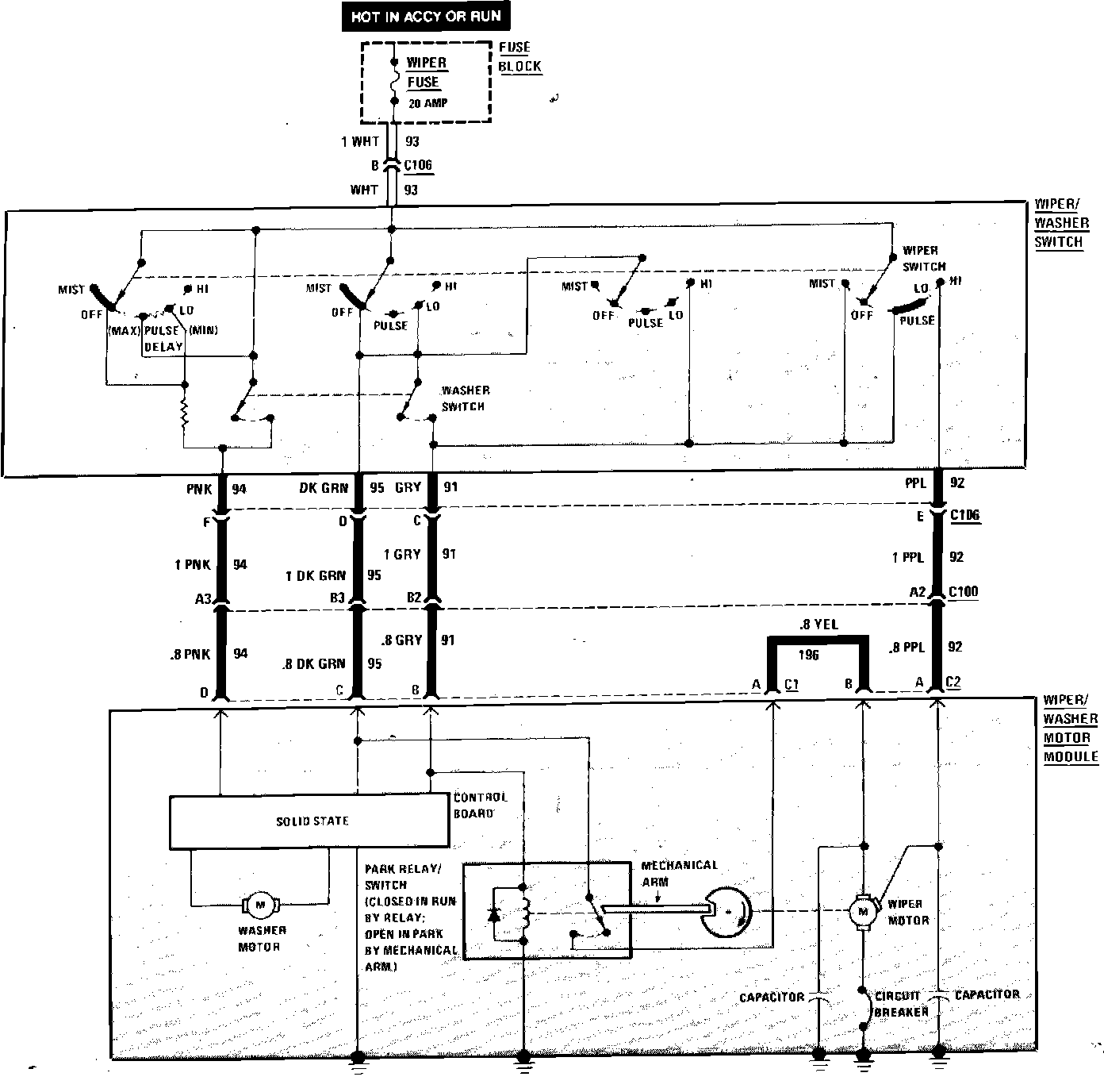 Wiper/Washer Wiring Circuit (With Pulse):