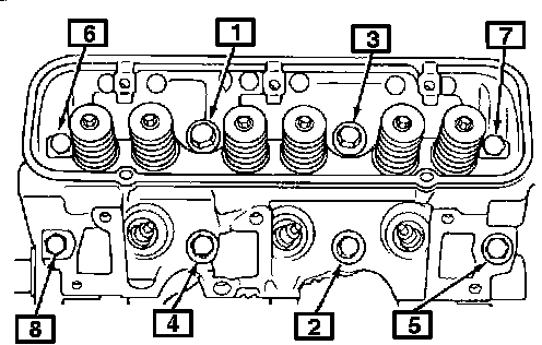 b. Tighten each bolt an additional 90°, in sequence, noting torque value as bolt is tightened. Should torque on bolt being tightening reached 60 ft. lbs. at any time, stop at this point and do not complete 90° rotation. Uneven tightening of bolts may distort cylinder bores, causing loss of compression and increased oil consumption.