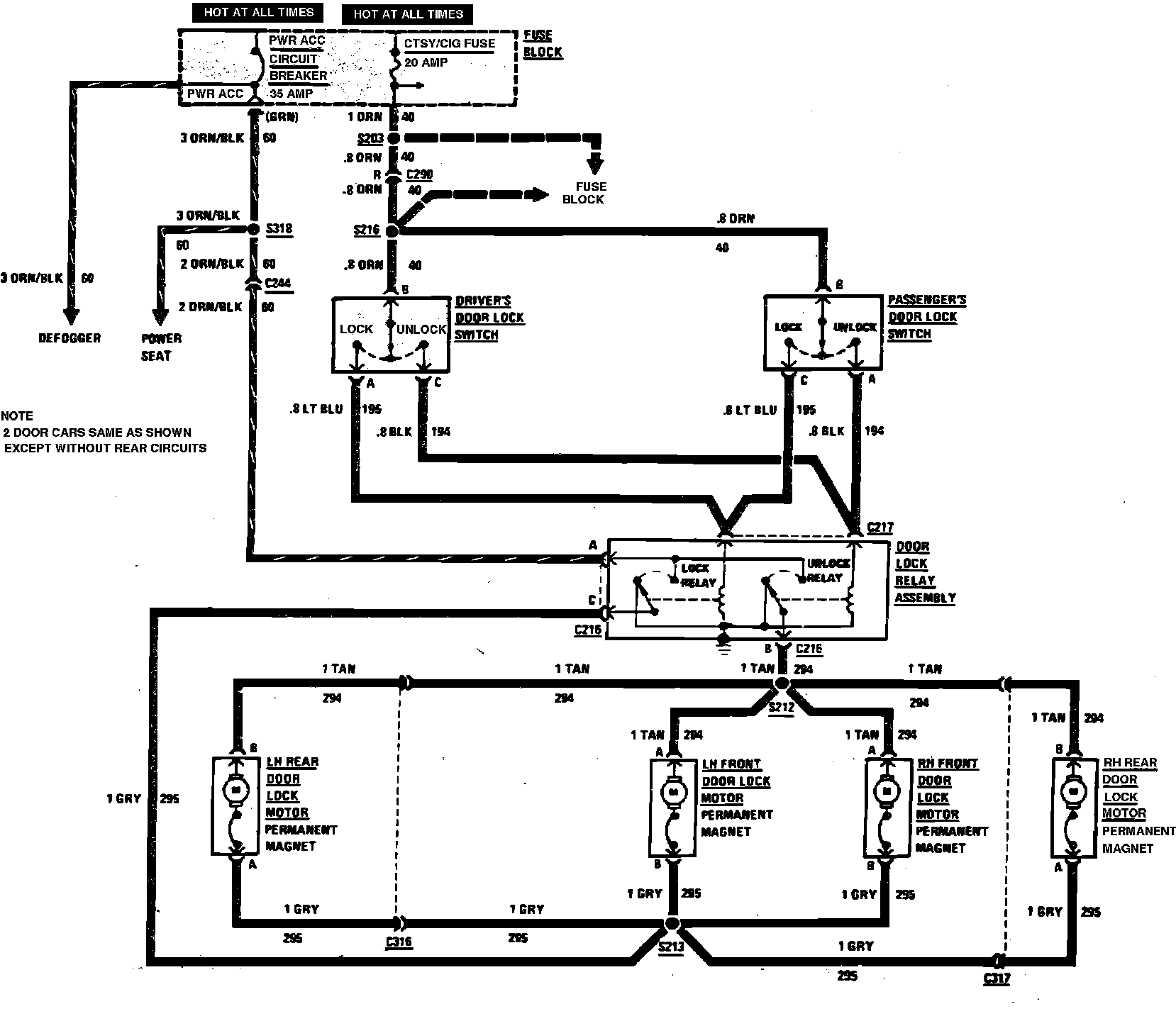 Power Door Lock Wiring Circuit (2 Door, With Console):