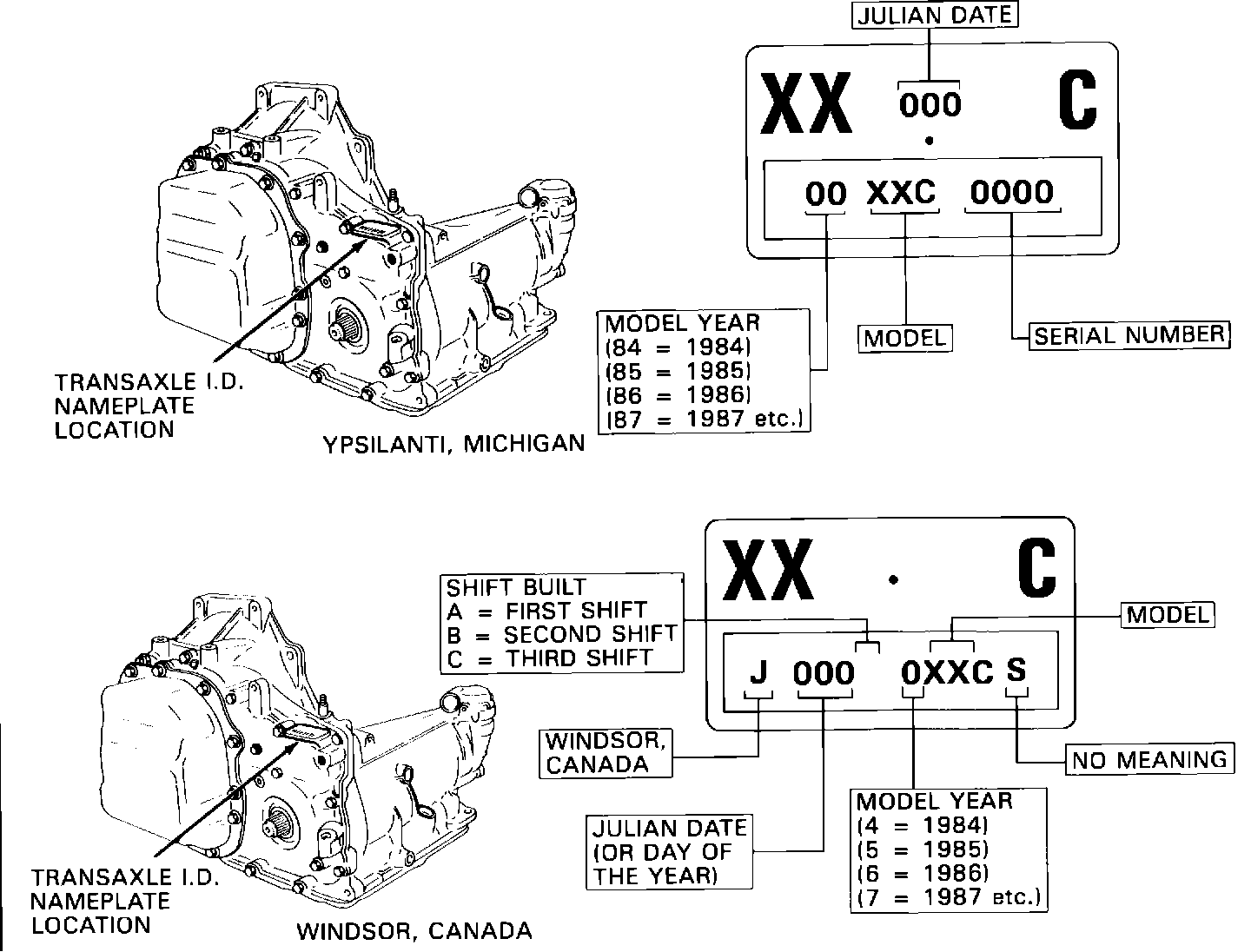 FIGURE 1 - THM 125/125C TRANSAXLE IDENTIFICATION INFORMATION: