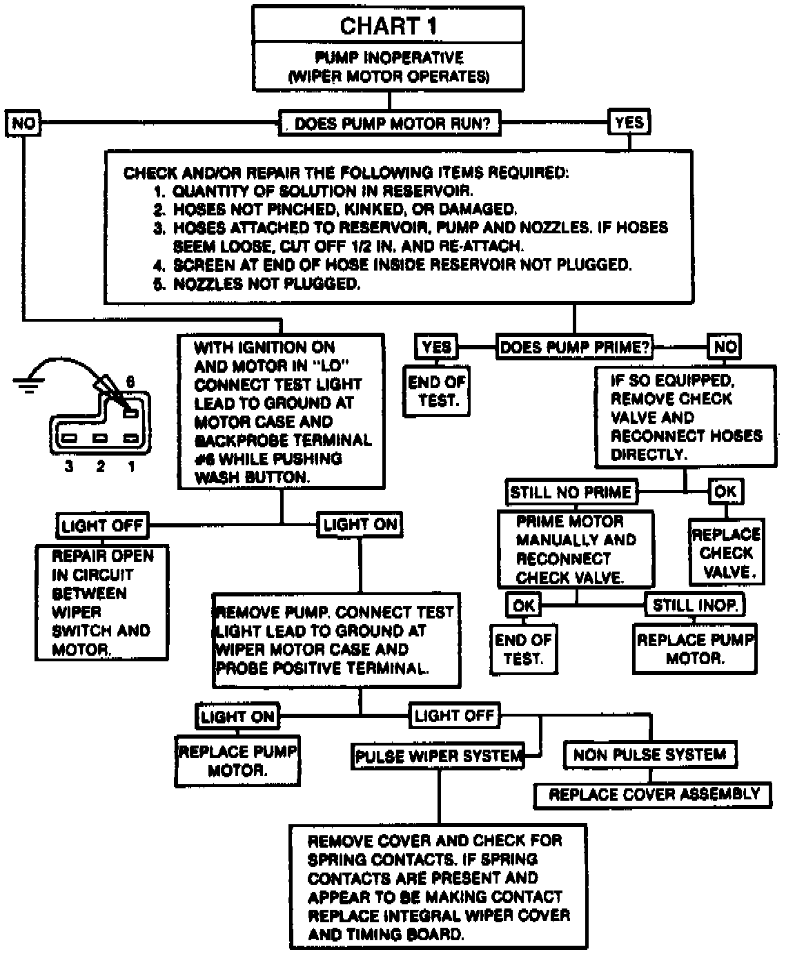 Chart 1 Washer Pump Inoperative (Wiper Motor Operates)
