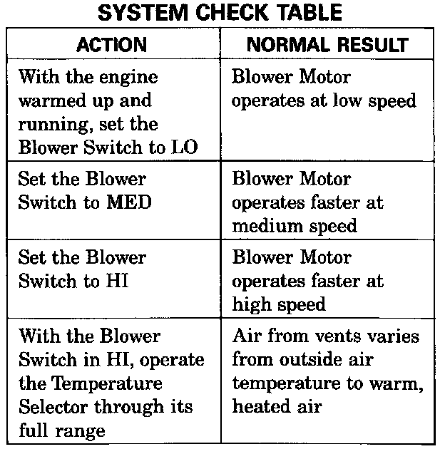Use the System Check Table as a guide to normal operation.
