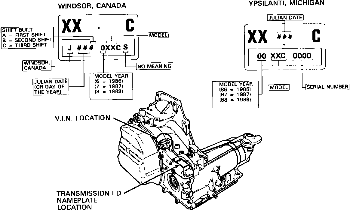 FIGURE 1 - THM 125/125C TRANSAXLE IDENTIFICATION INFORMATION: