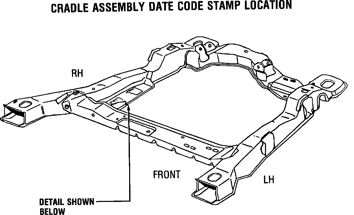 4. Vehicles equipped with cradles with non-suspect dates (dates other than November 10, 11, 12, or 13, 1987) should be resealed with GM approved wax or undercoating as replacement of the cradle is not required.