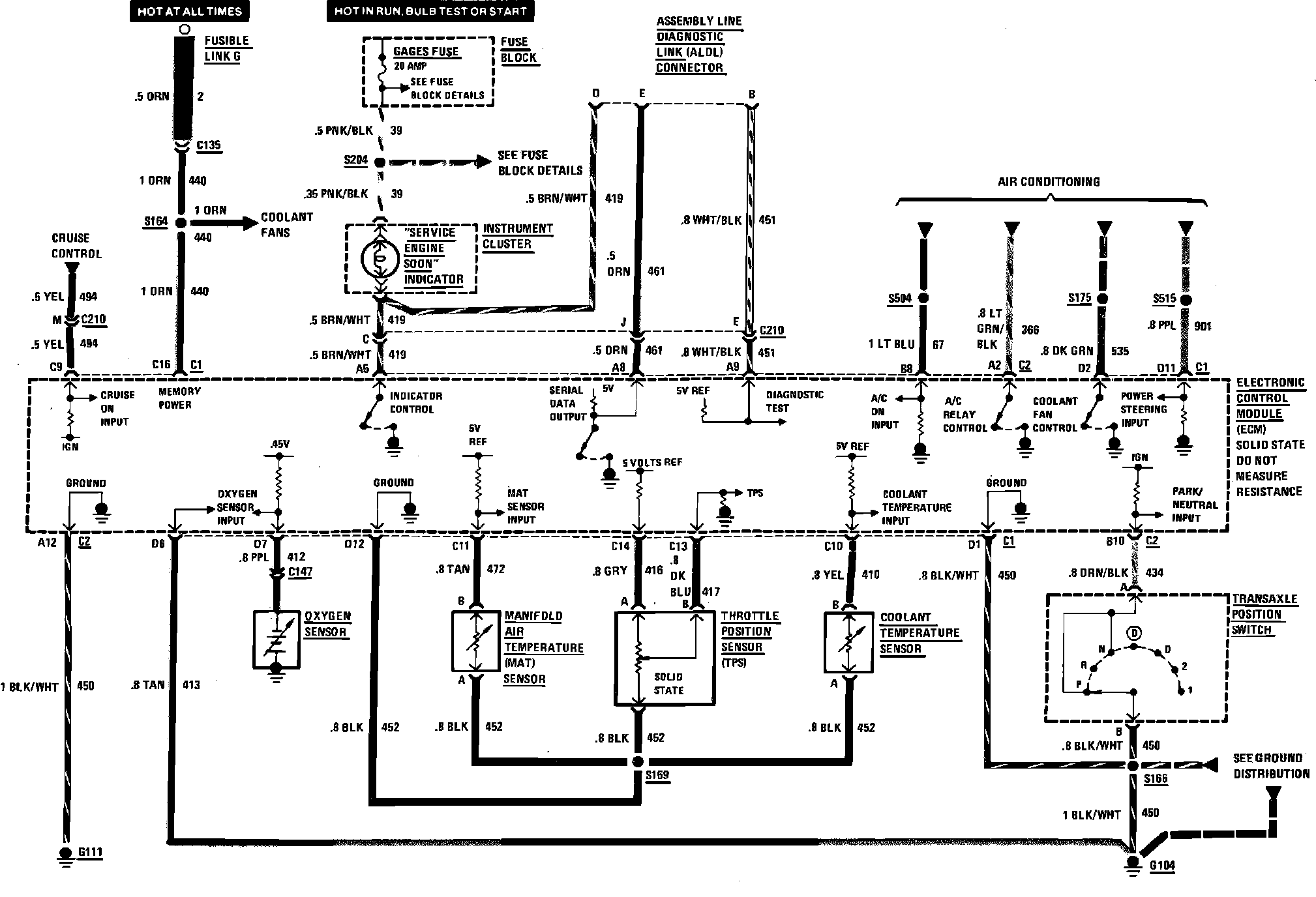 Sequential Fuel Injection Wiring Circuit (Automatic Transaxle Selector Switch, Engine Data Sensors & Service Engine Soon Indicator):
