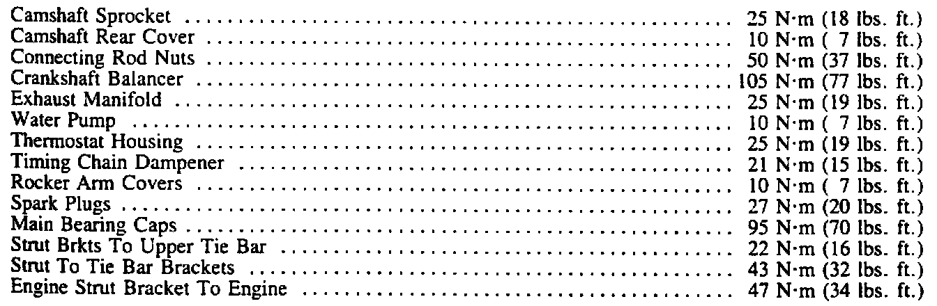 Torque Specifications: