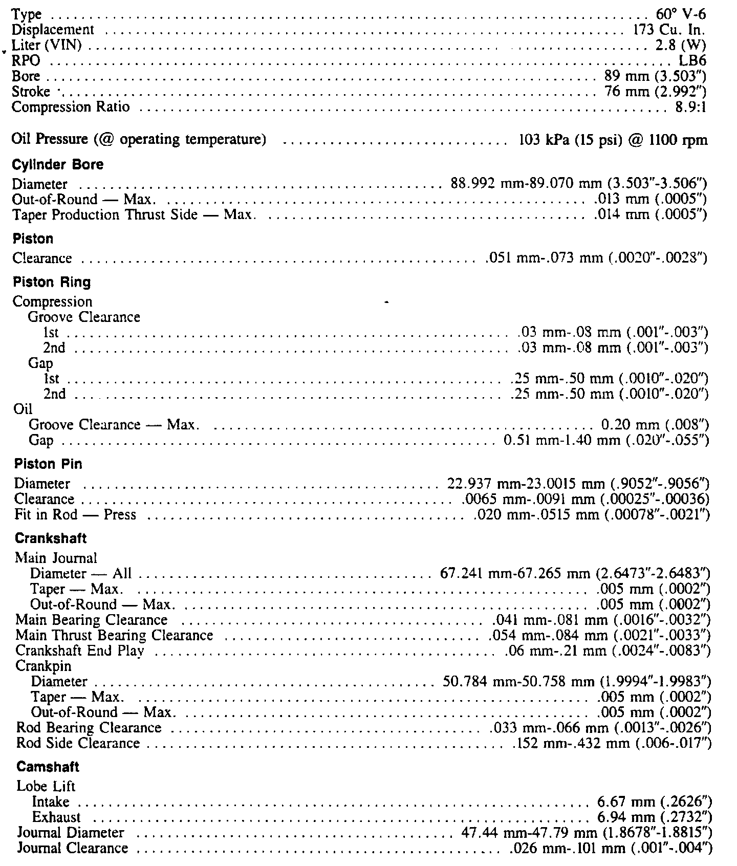 Regal V6-173 2.8L