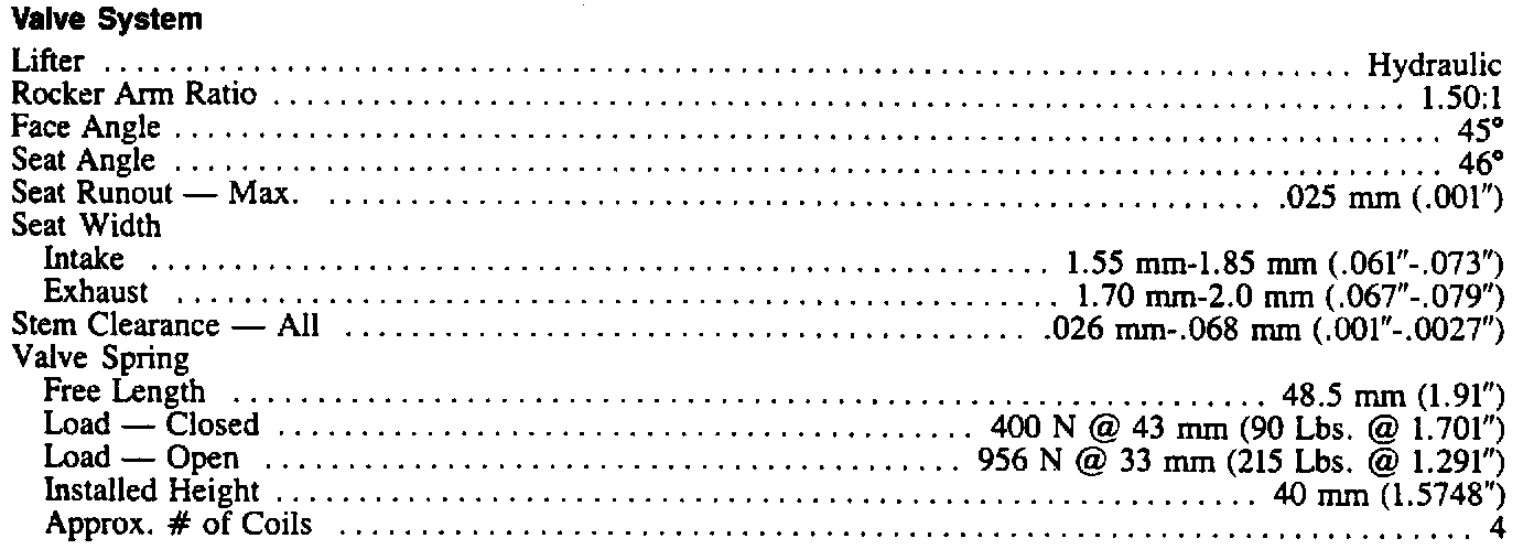 Engine Specifications: