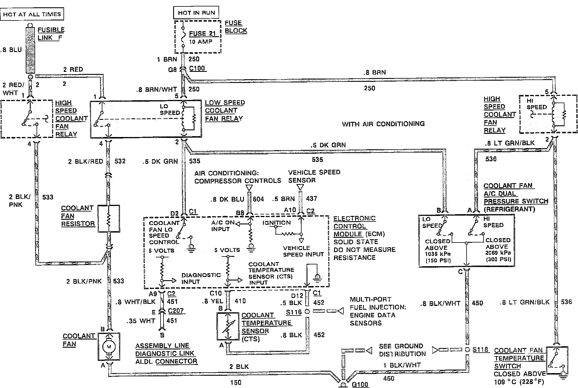 Coolant Fan Wiring Circuit: