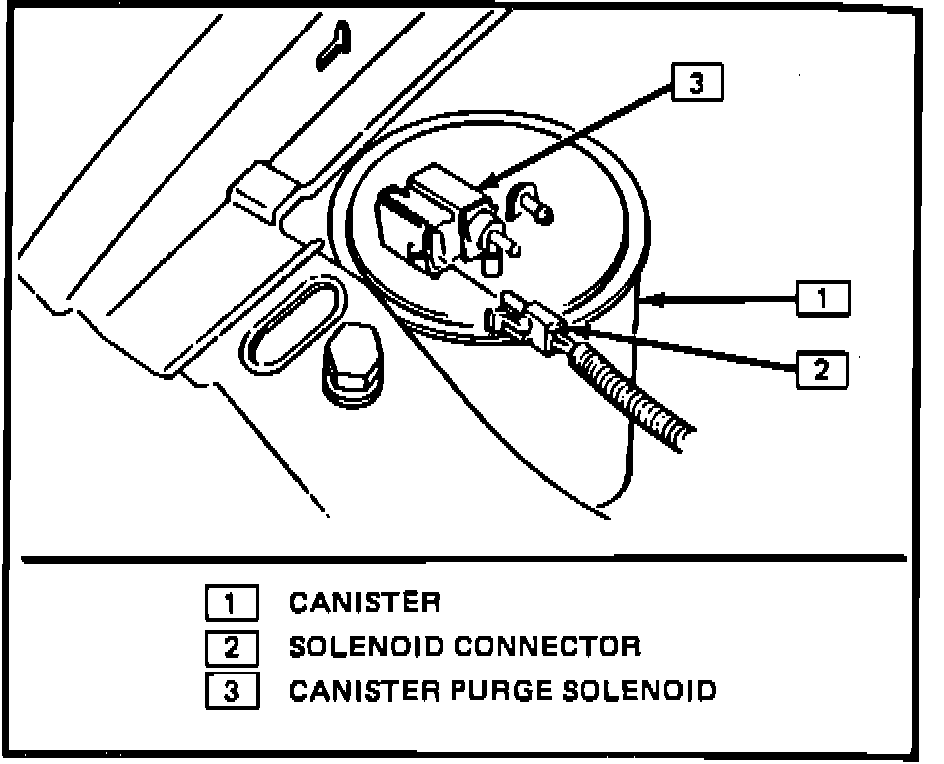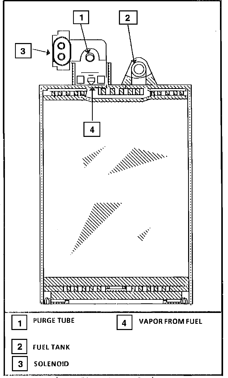 The ECM operates a solenoid valve which controls vacuum to the purge passage in the charcoal canister. Under cold or idle conditions, the solenoid is turned "ON" by the ECM which blocks vacuum to the canister purge passage. The ECM turns "OFF" the solenoid valve and allows purge when: