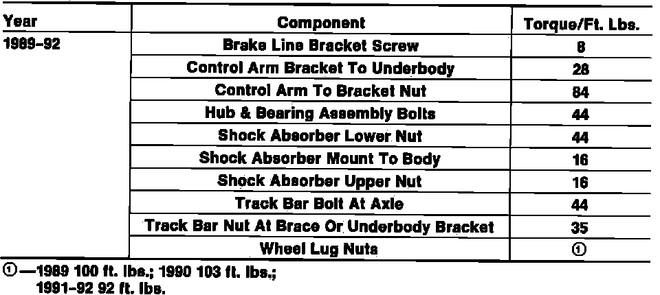 Tightening Specifications: