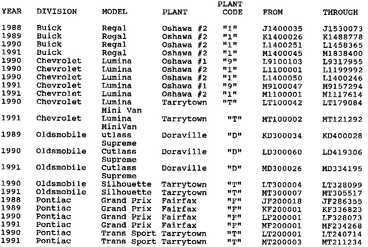 Involved are certain 1988-90 and early 1991 Buick Regal, Chevrolet Lumina, Oldsmobile Cutlass Supreme, Pontiac Grand Prix; and 1990 and early 1991 Chevrolet Lumina Mini Van, Oldsmobile Silhouette and Pontiac Trans Sport model vehicles built within the VIN breakpoints: