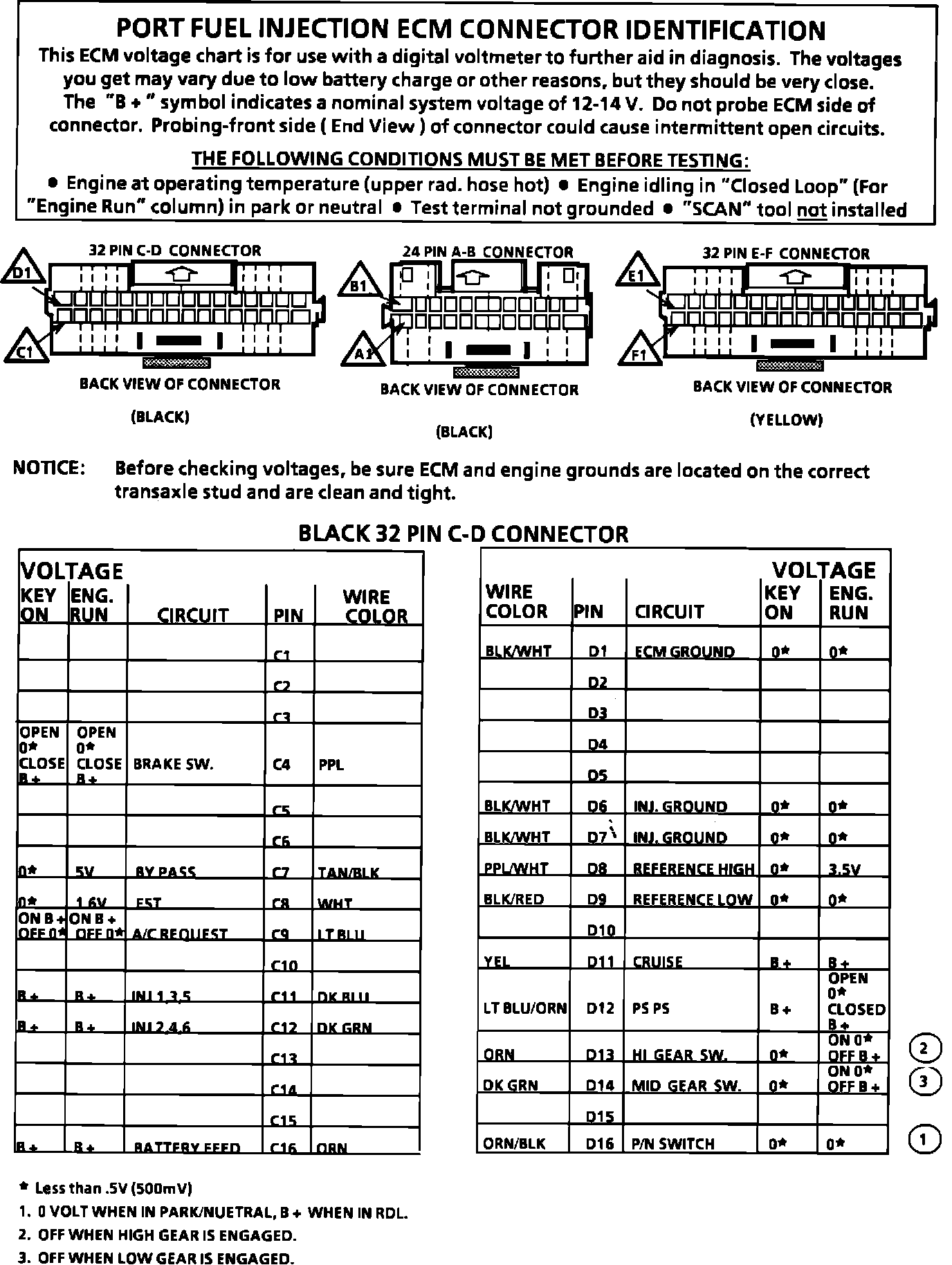 ECM Connector Terminal Identification And Voltage Specification (Part 1 Of 2):