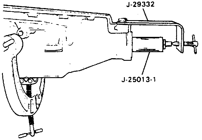 b. Install output shaft and rear unit support fixture J-25013-1 and output shaft support fixture J-29332-1 or their equivalents.
