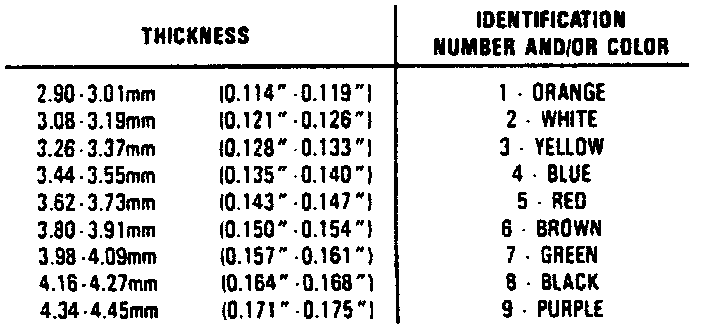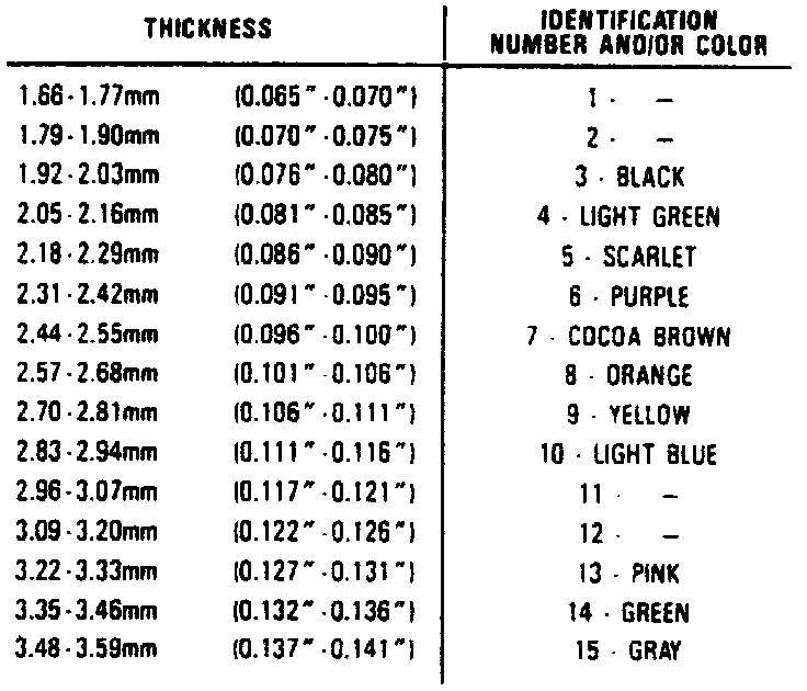 d. Read dial indicator. Endplay should be 0.0O4-0.025 inch. Refer to chart for proper washer thickness.