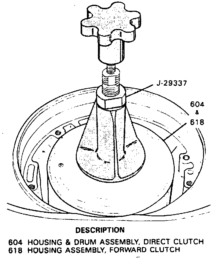 31. Install J-29334-1 from fourth clutch compressor J-29334 or equivalent on fourth clutch spring and retainer, then install J-29334-2 from fourth clutch compressor J-29334 or equivalent on case.