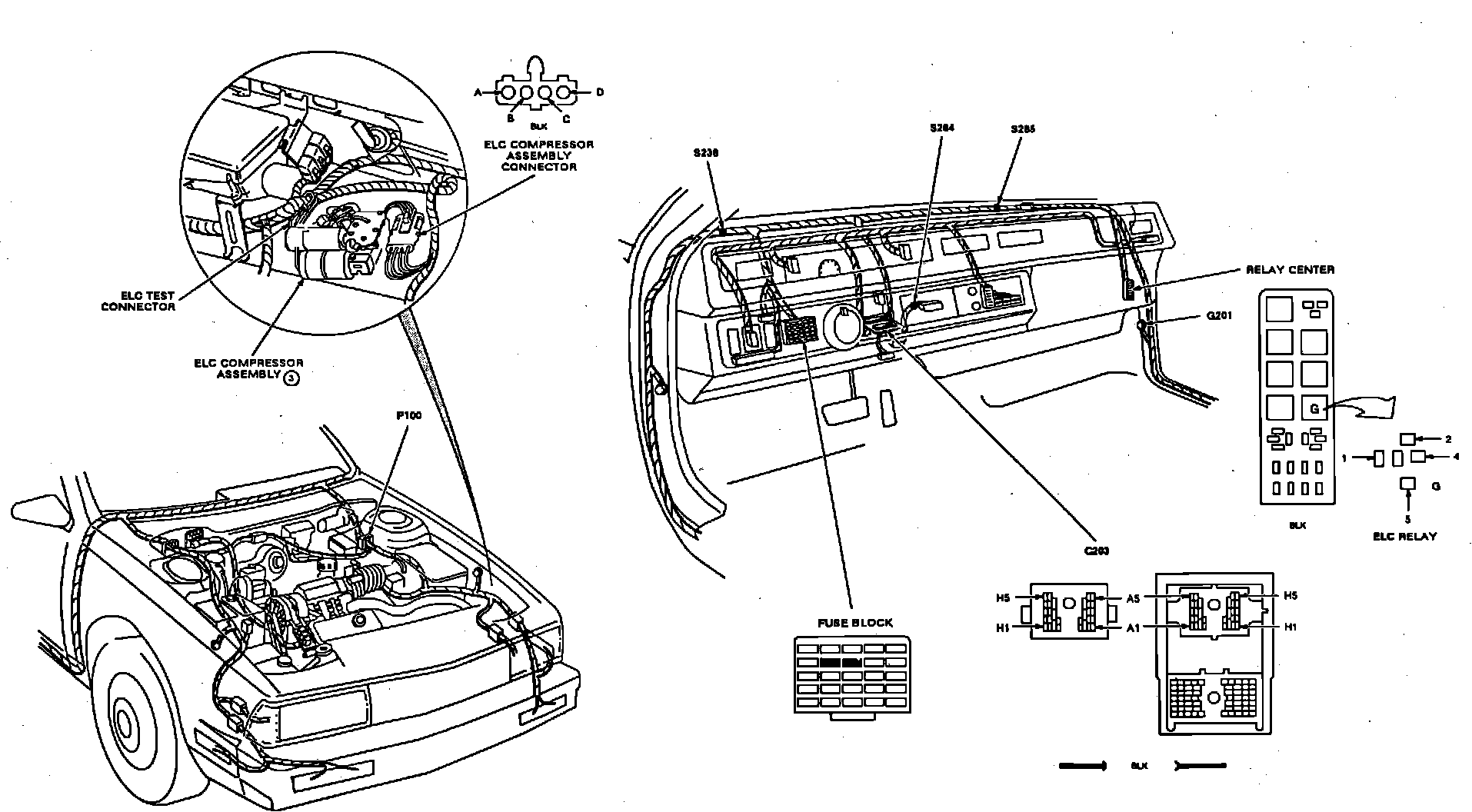 Electronic Level Control Components Location (Engine & Passenger Compartments):