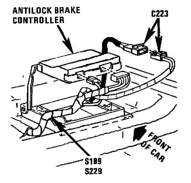 The Antilock Brake Controller is located below the RH front seat.