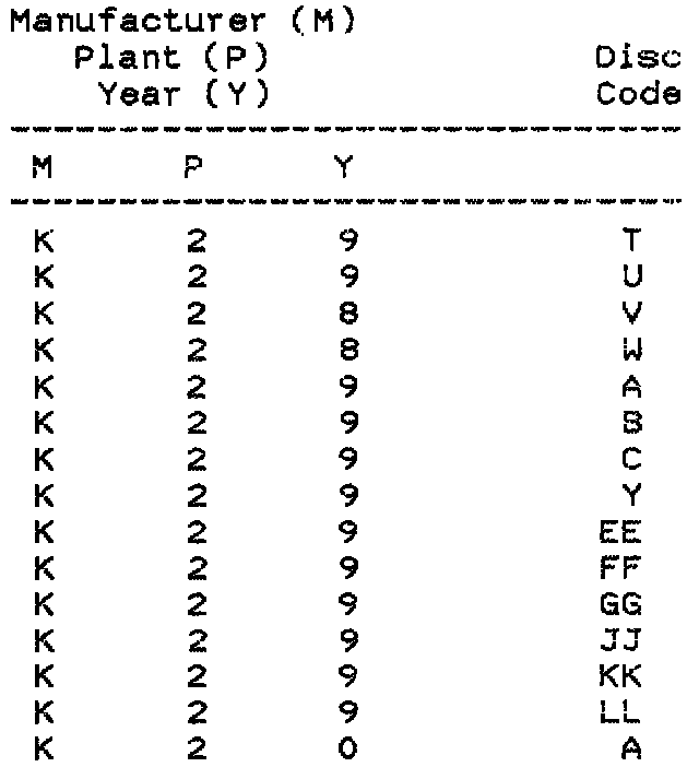 If codes match any of the combinations on list or are unreadable/illegible, the wheel must be replaced.