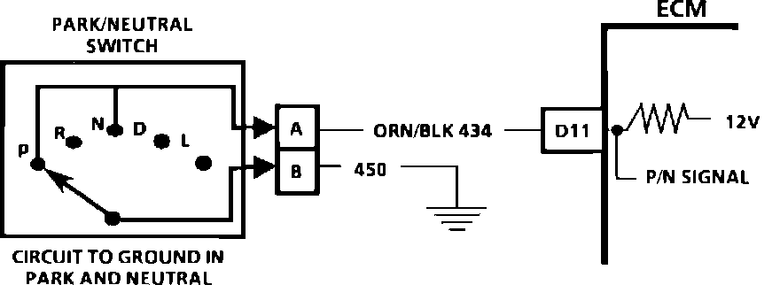 ^ If CKT 434 always indicates drive (open), a drop in the idle may exist when the gear selector is moved into drive range.