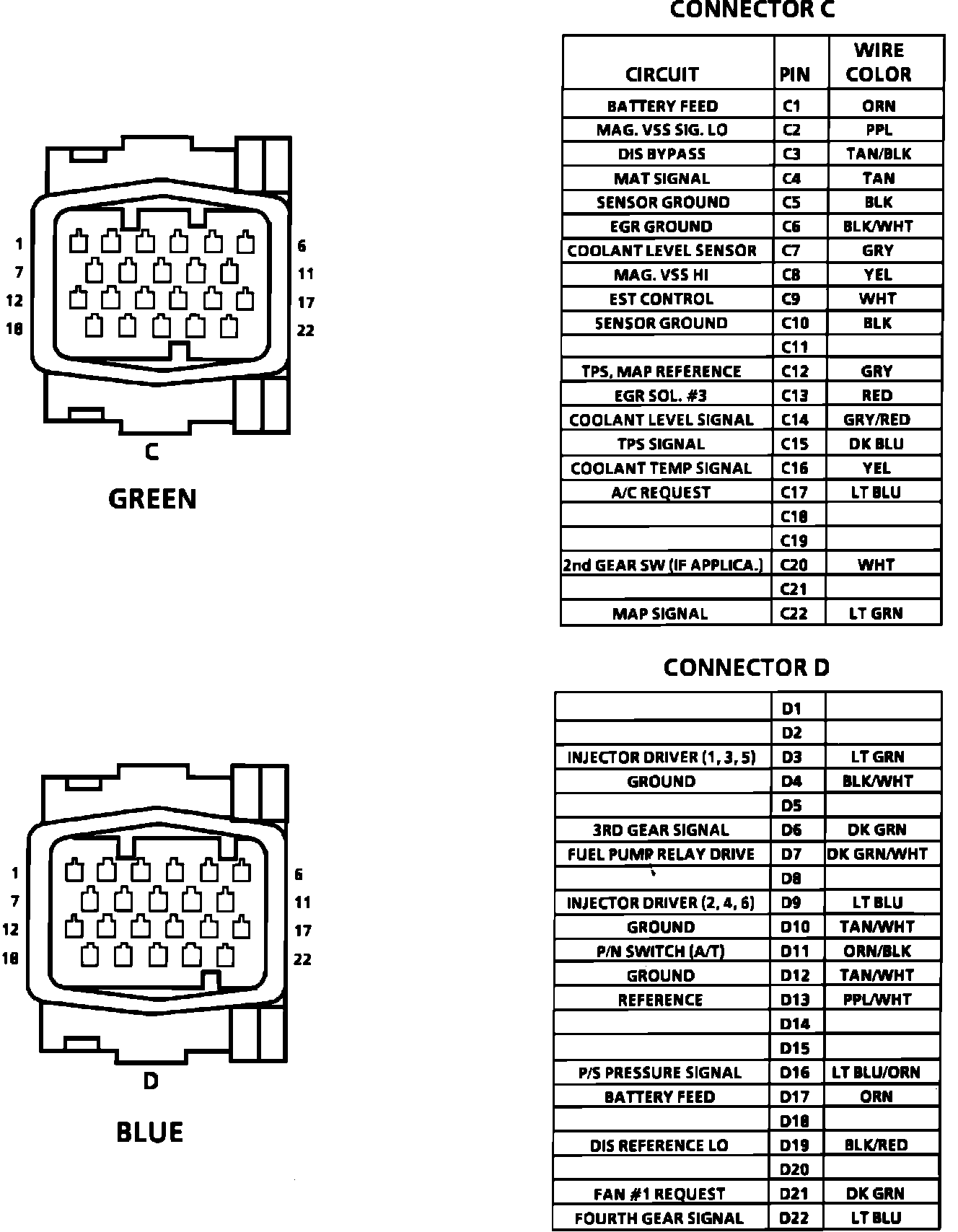ECM Connector Terminal Identification (Part 2 Of 2):