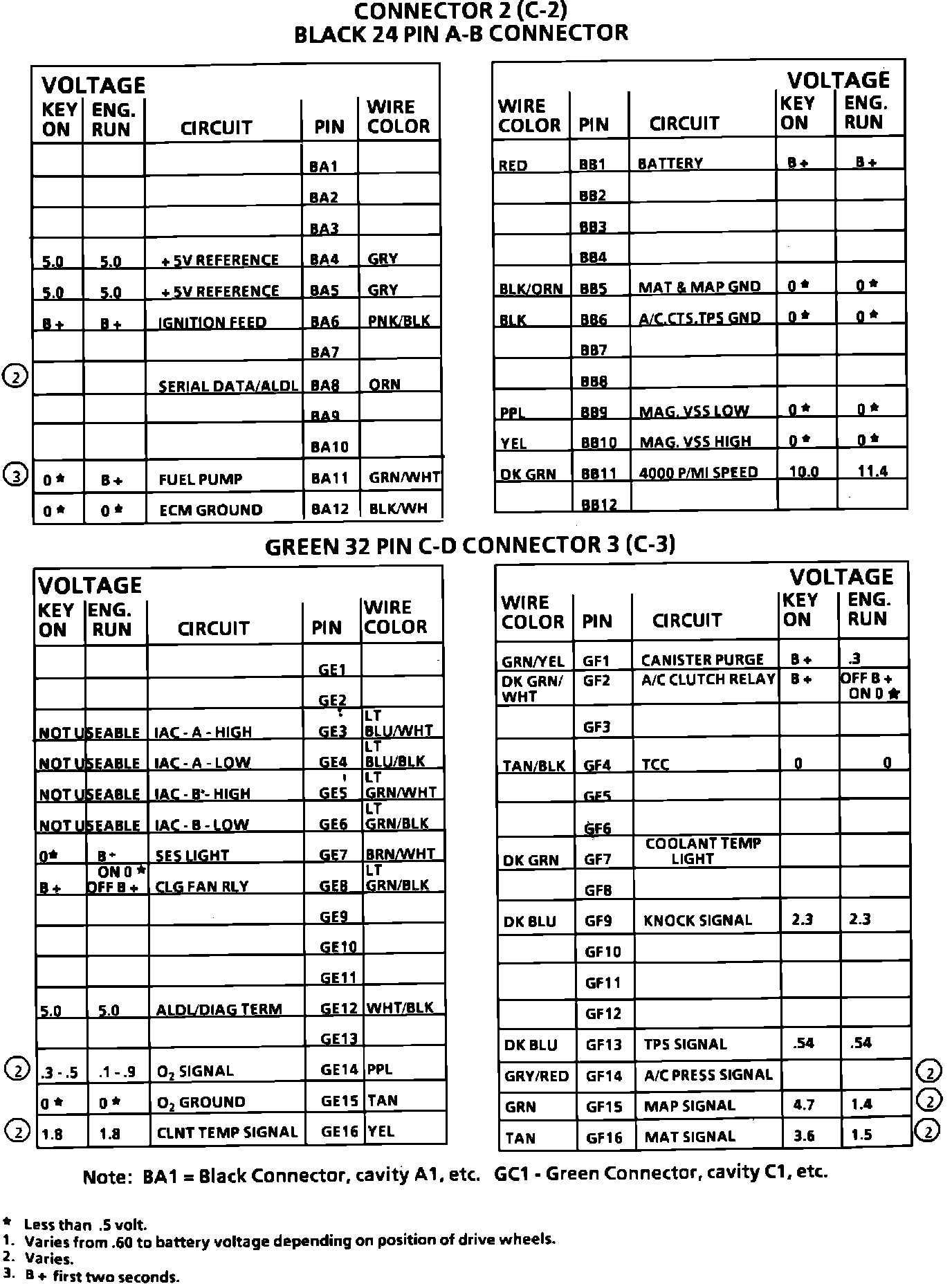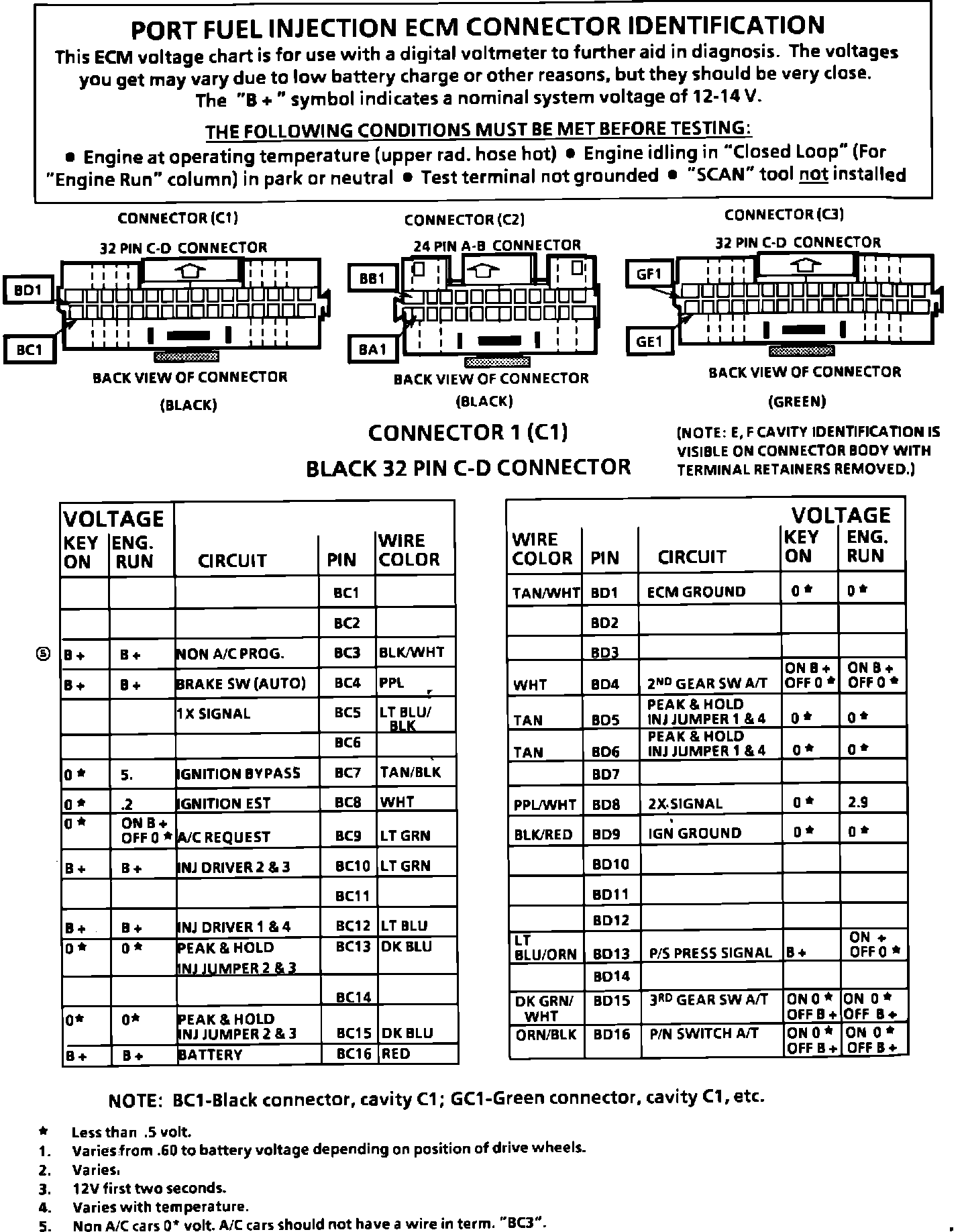 ECM Connector Terminal Identification And Voltage Specification (Part 1 Of 2):