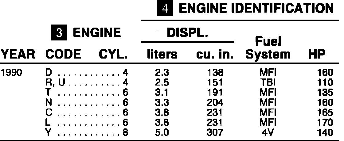 4 - ENGINE IDENTIFICATION: On the line where the engine code apperas, read to the right to identify the engine.