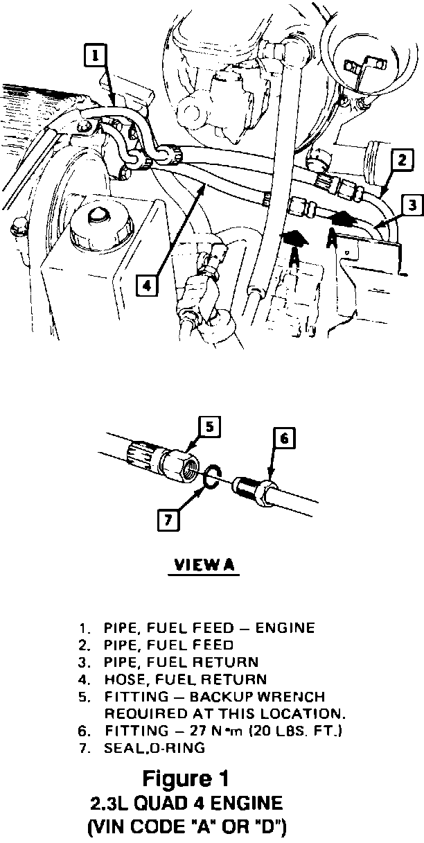 For Quad 4 engines (VIN Codes "A" or "D"), see Figure (1); the fittings to be torqued are labelled "5" and "6" in Figure 1.