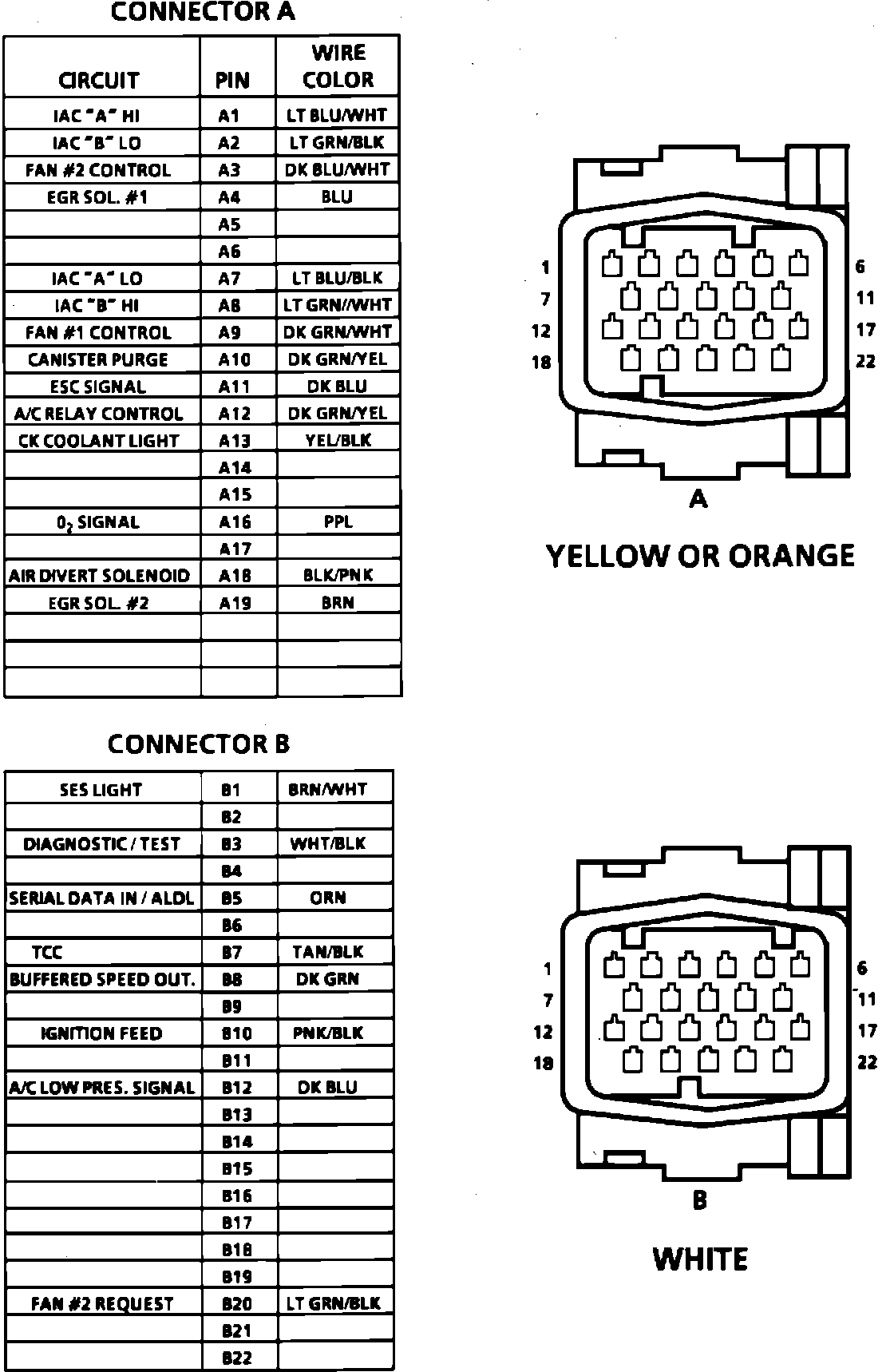 ECM Connector Terminal Identification (Part 1 Of 2):