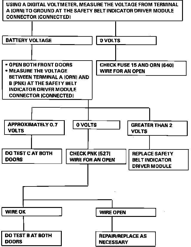 Test A: Safety Belt Indicator Driver Module Test