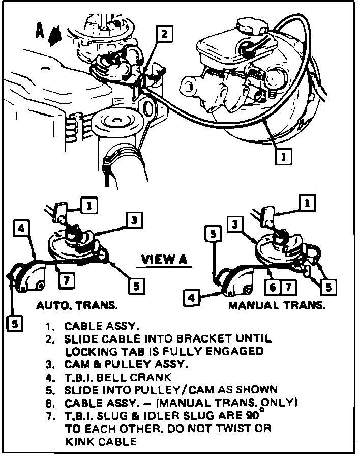 ^ After securing all components of the accelerator linkage, the linkage must operate freely without binding between full closed throttle and full wide open throttle.