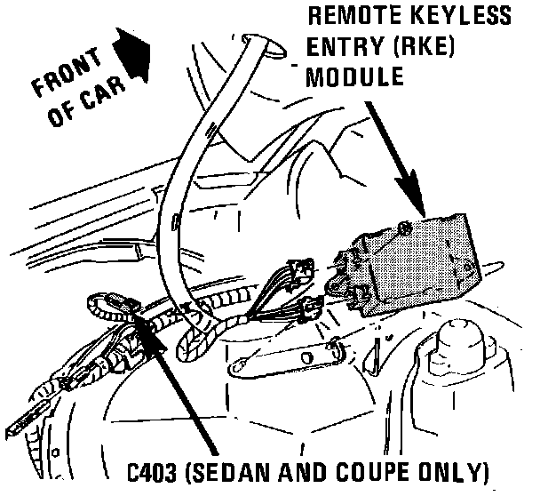 The Remote Keyless Entry Module is located in the LH center of luggage compartment, near wheelhouse.