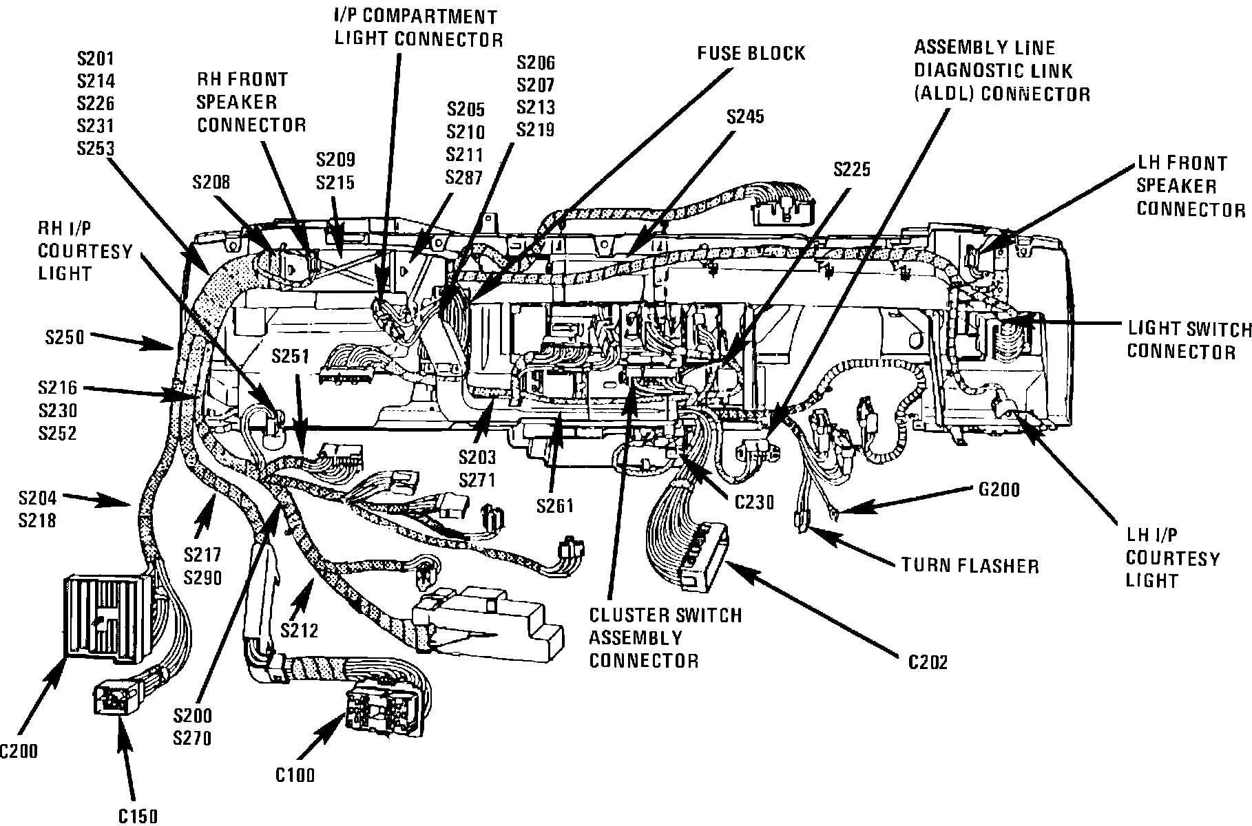 The Turn Signal Flasher is located behind I/P, right of steering column.