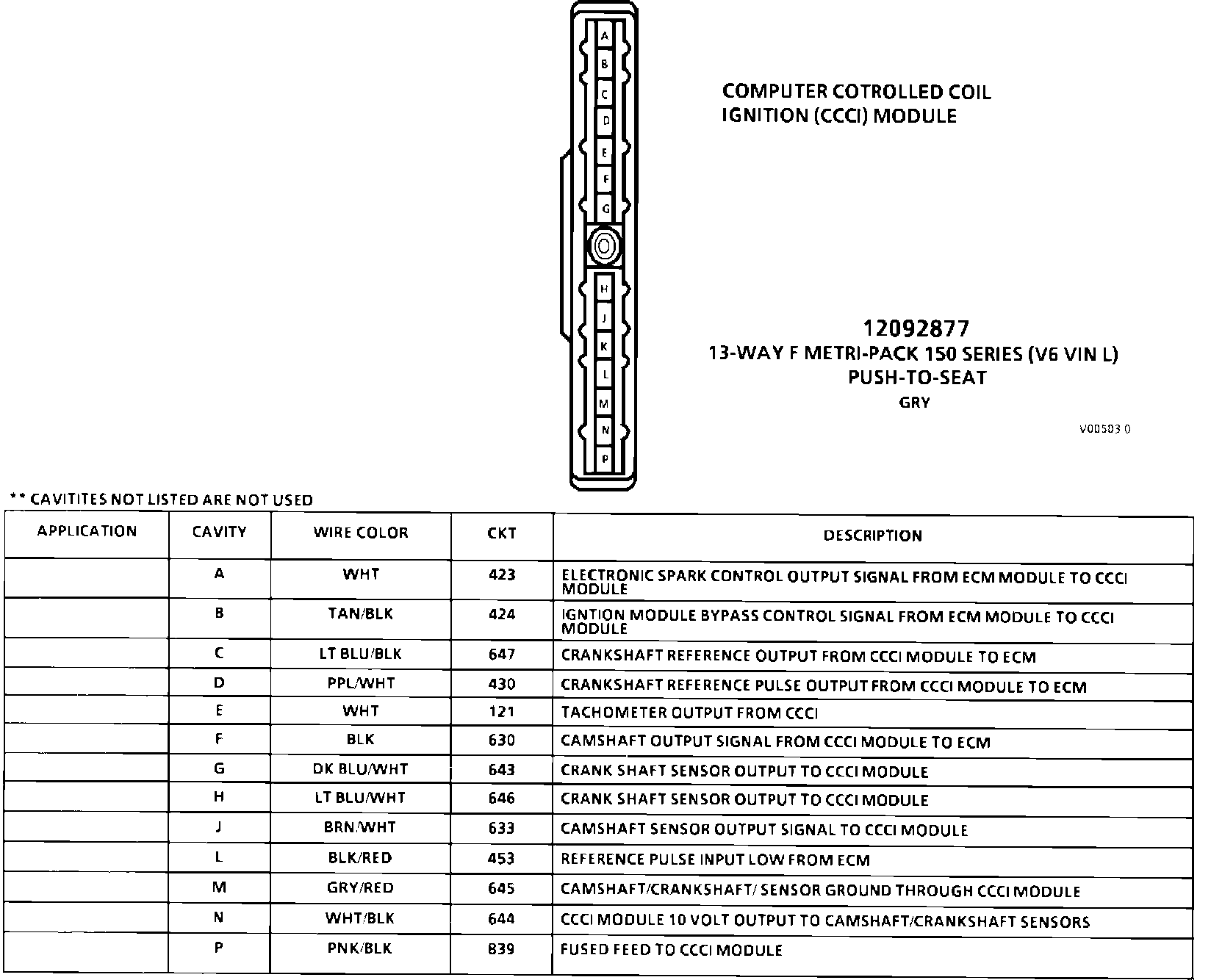 Computer Controlled Coil Ignition (CCCI) Module Connector Face: