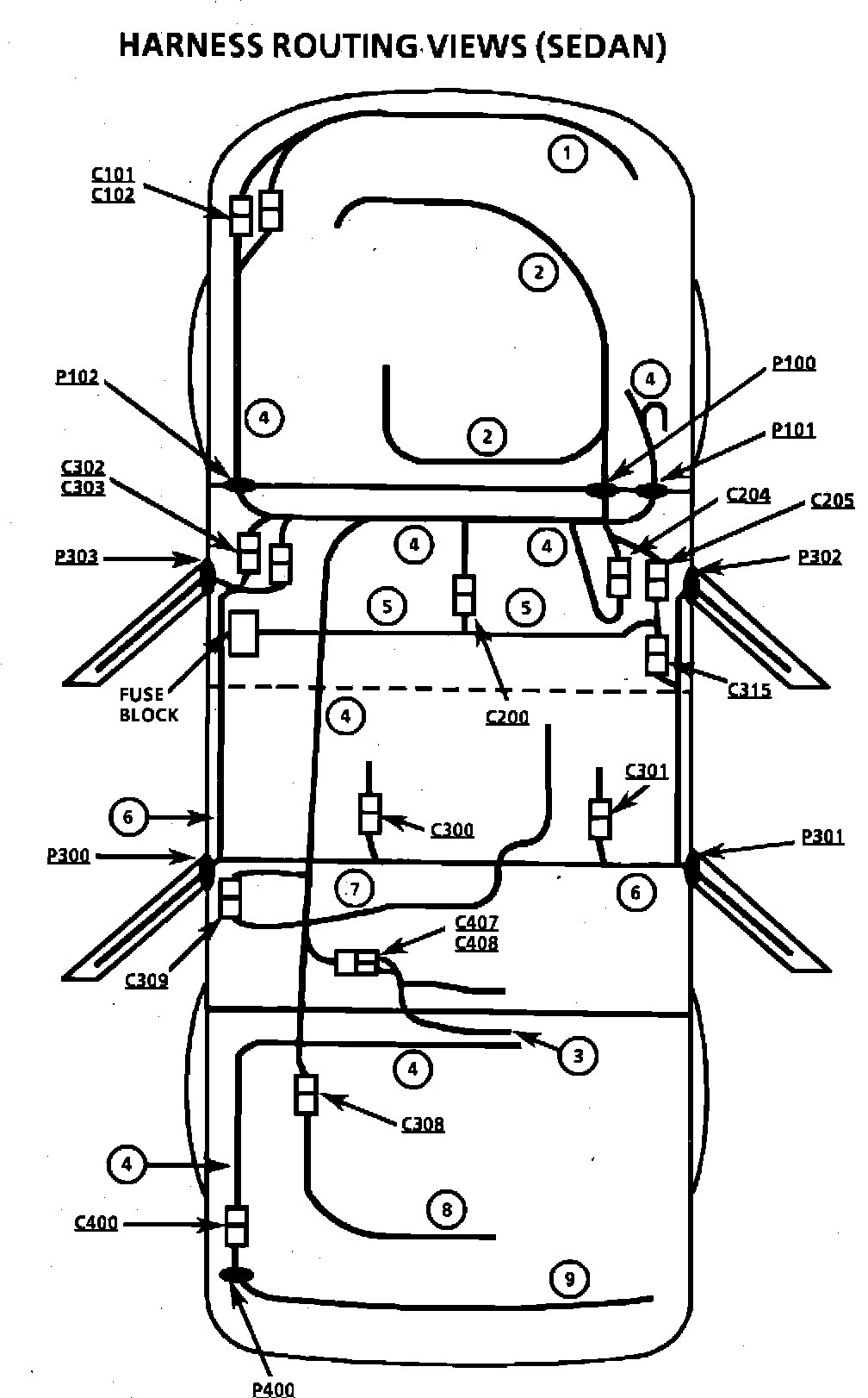 Harness Routing Views (Sedan):