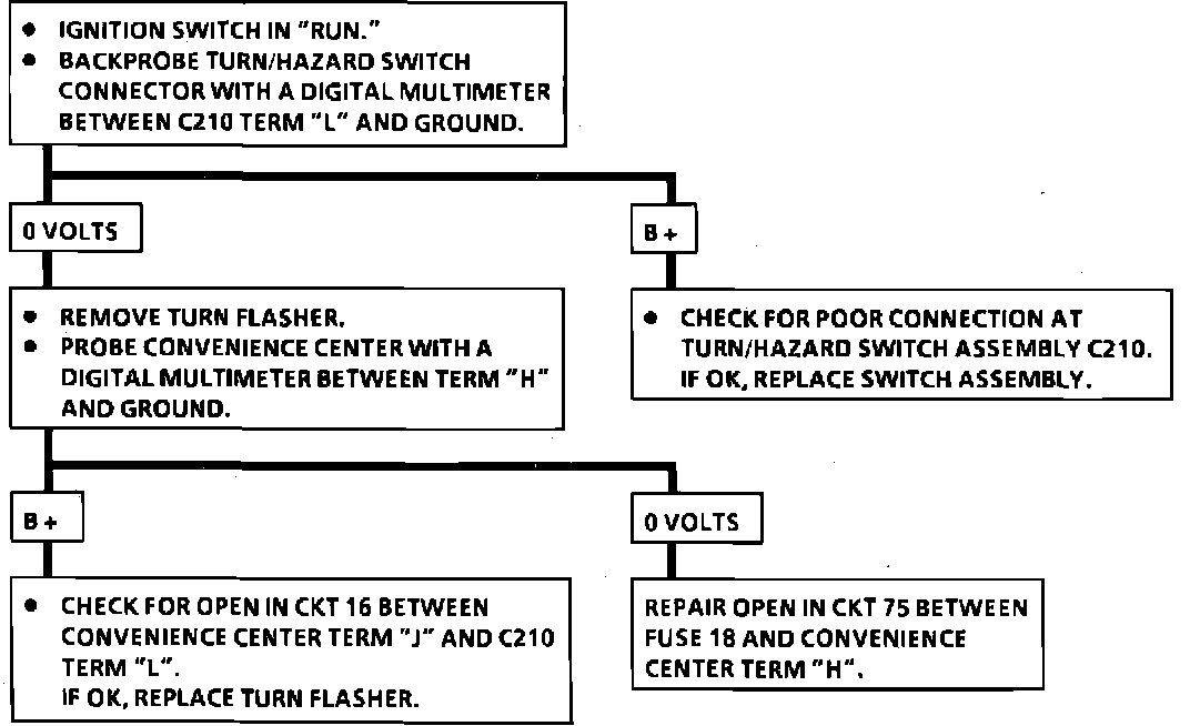 Chart #1 - Turn Lights Inoperative, Hazard Lights Operate Normally: