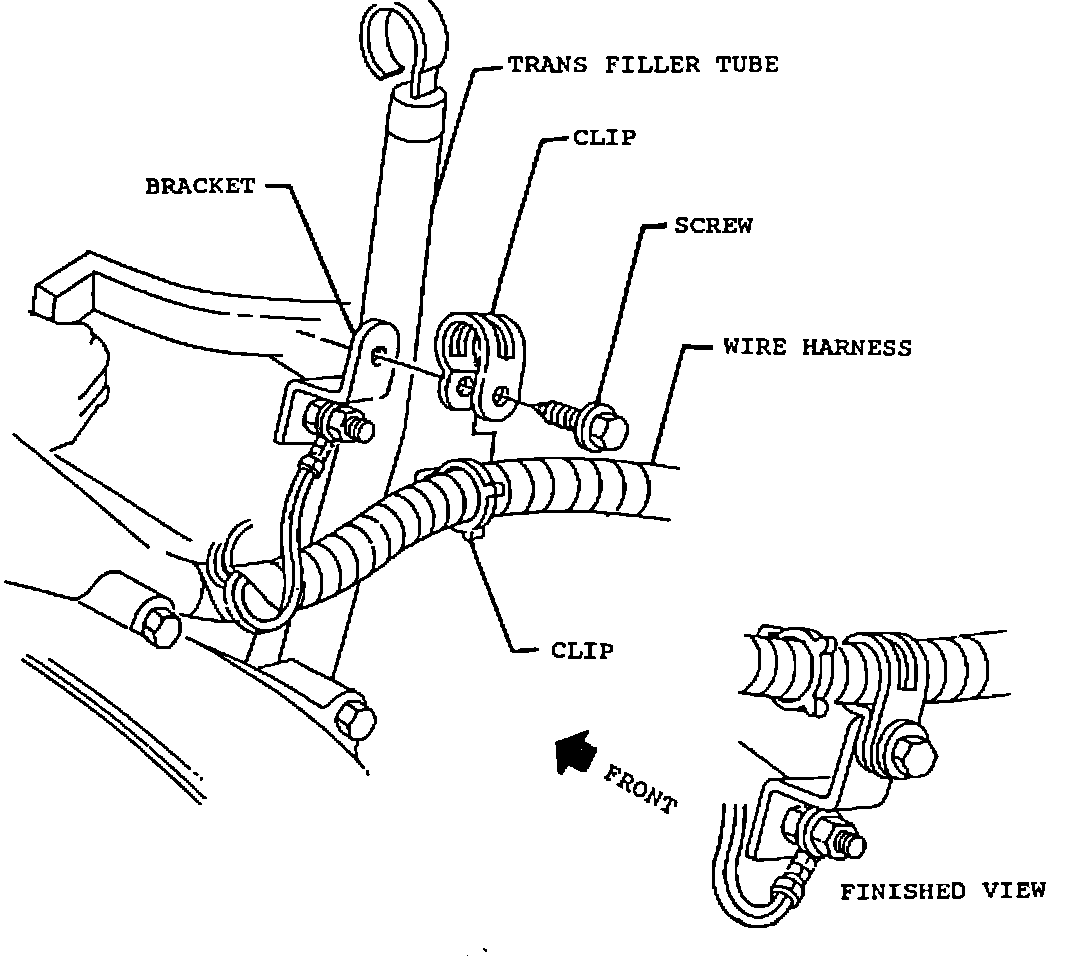 The harness may be pushed forward from its normal position, allowing contact with the engine block. A clip was added in production after the following VIN 'S: