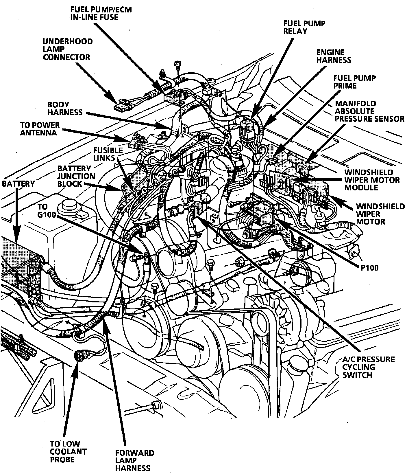 Component Location View. Engine Compartment: