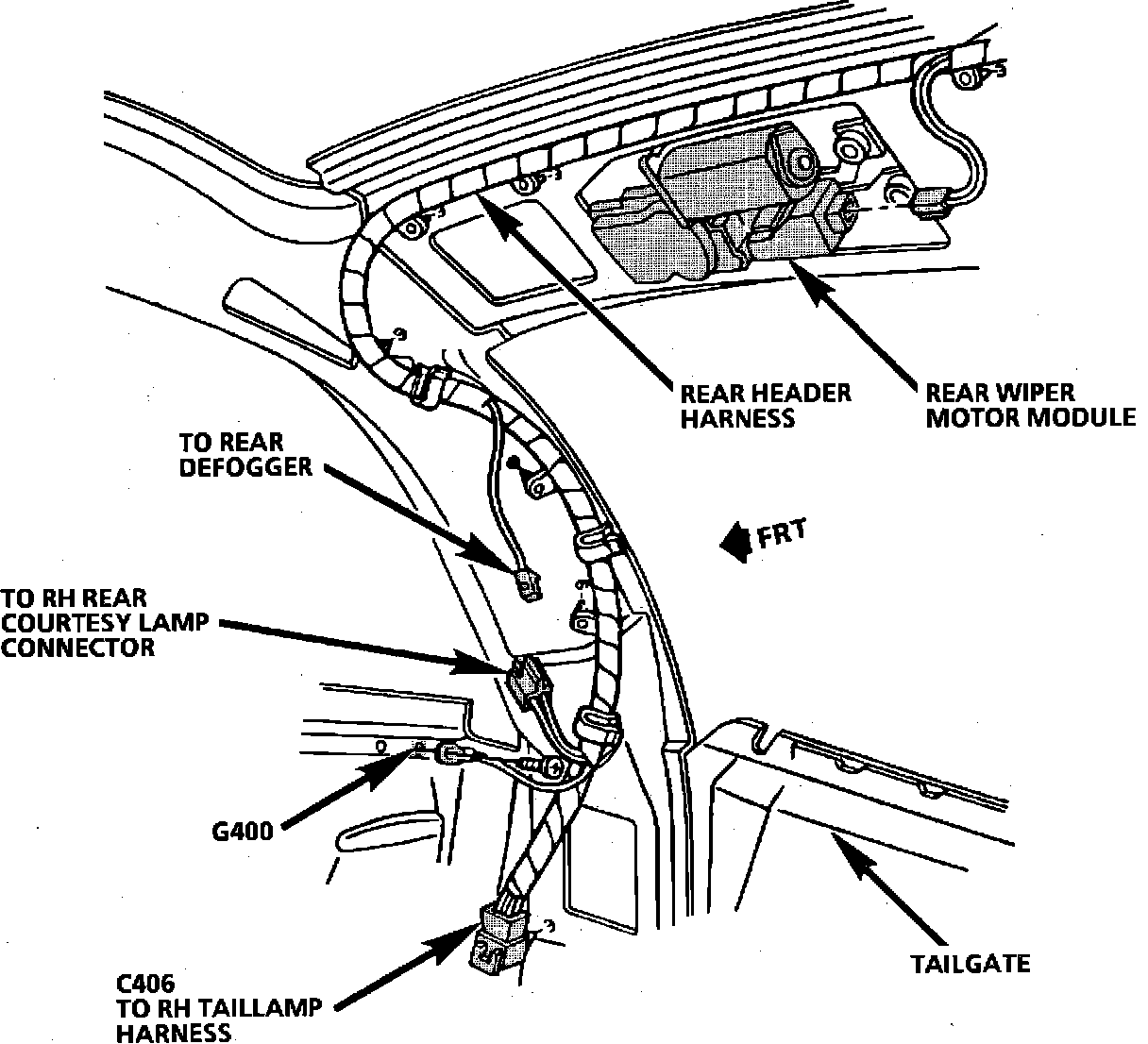 Component Location View. RH Rear Header (Wagon):