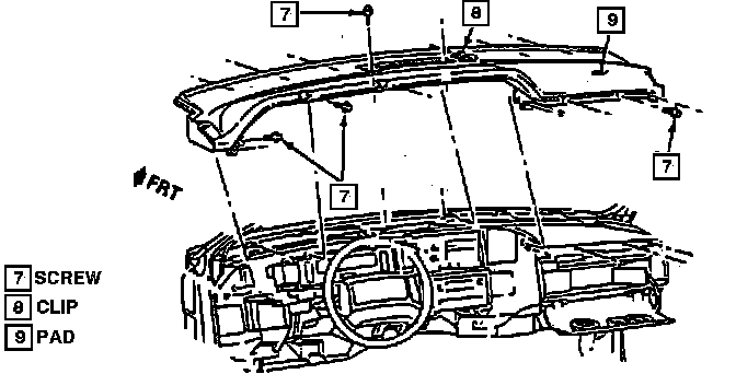 25. Remove instrument panel carrier from windshield lower frame flange, then unsnap and pull away.