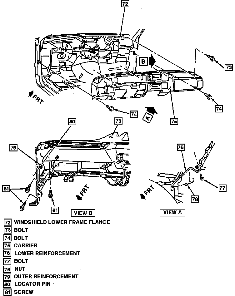 Fig. 35 Instrument Panel Carrier Mounting. 1991 Caprice, Custom Cruiser & Roadmaster: