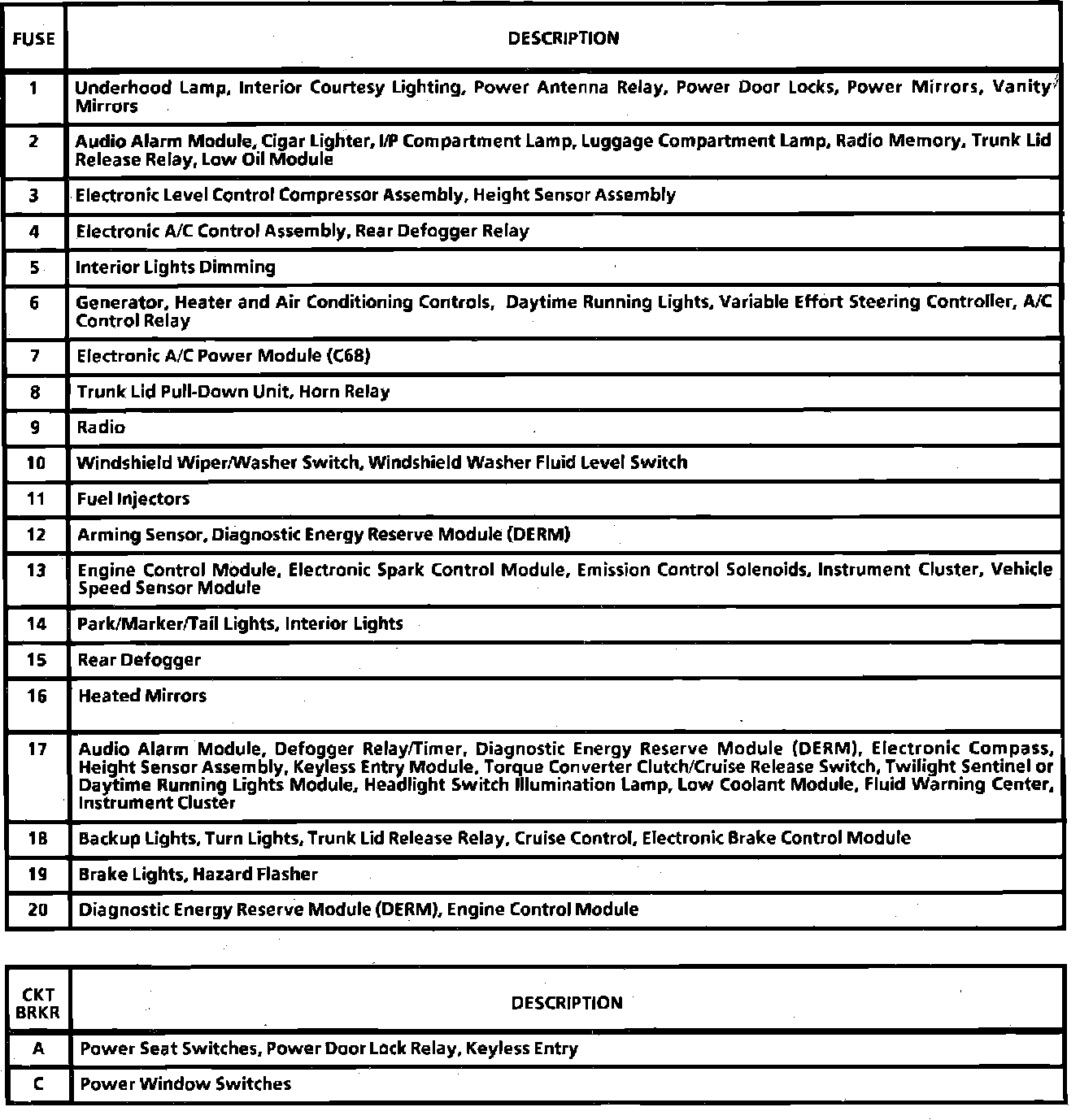 Fuse and Fusible Link Locations