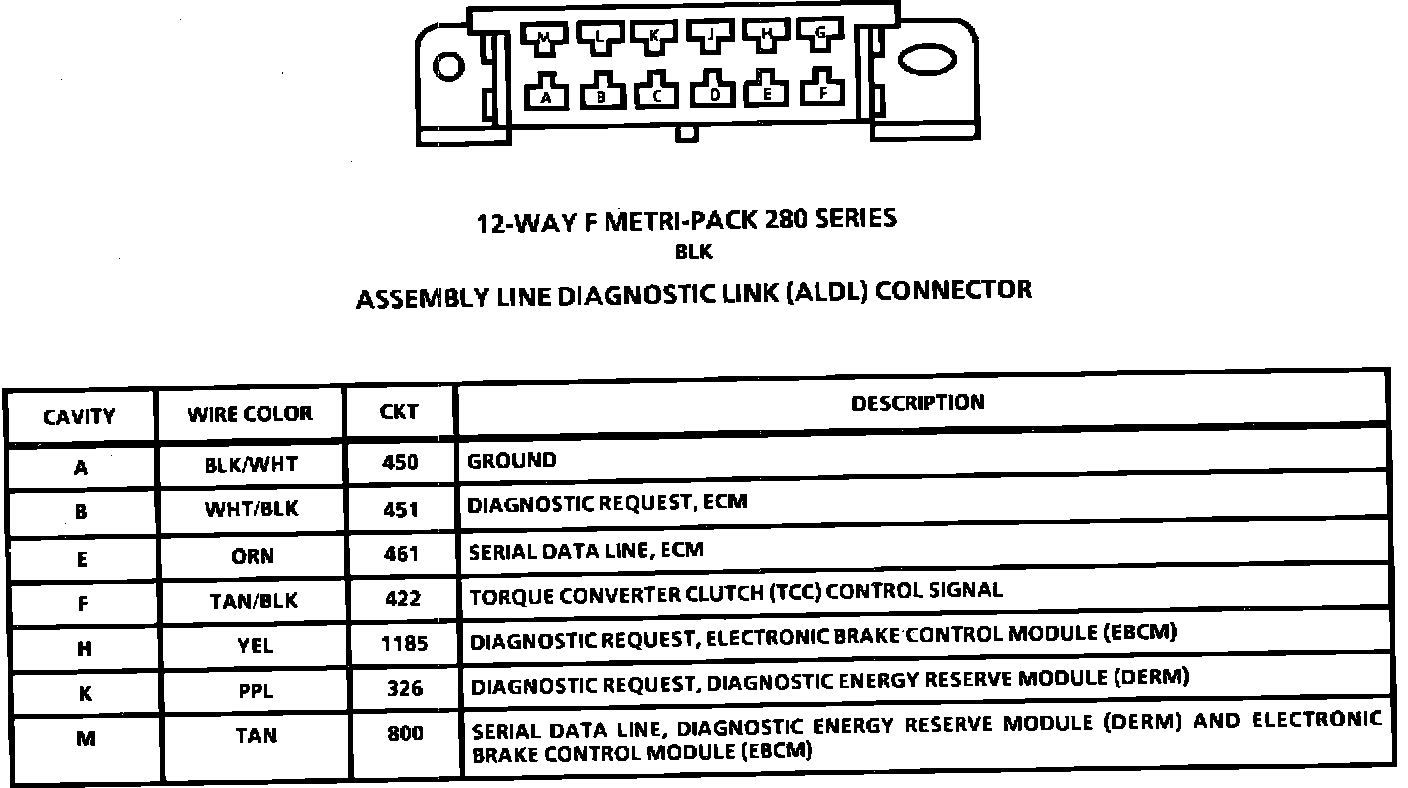 Assembly Line Diagnostic Link (ALDL) Connector Face: