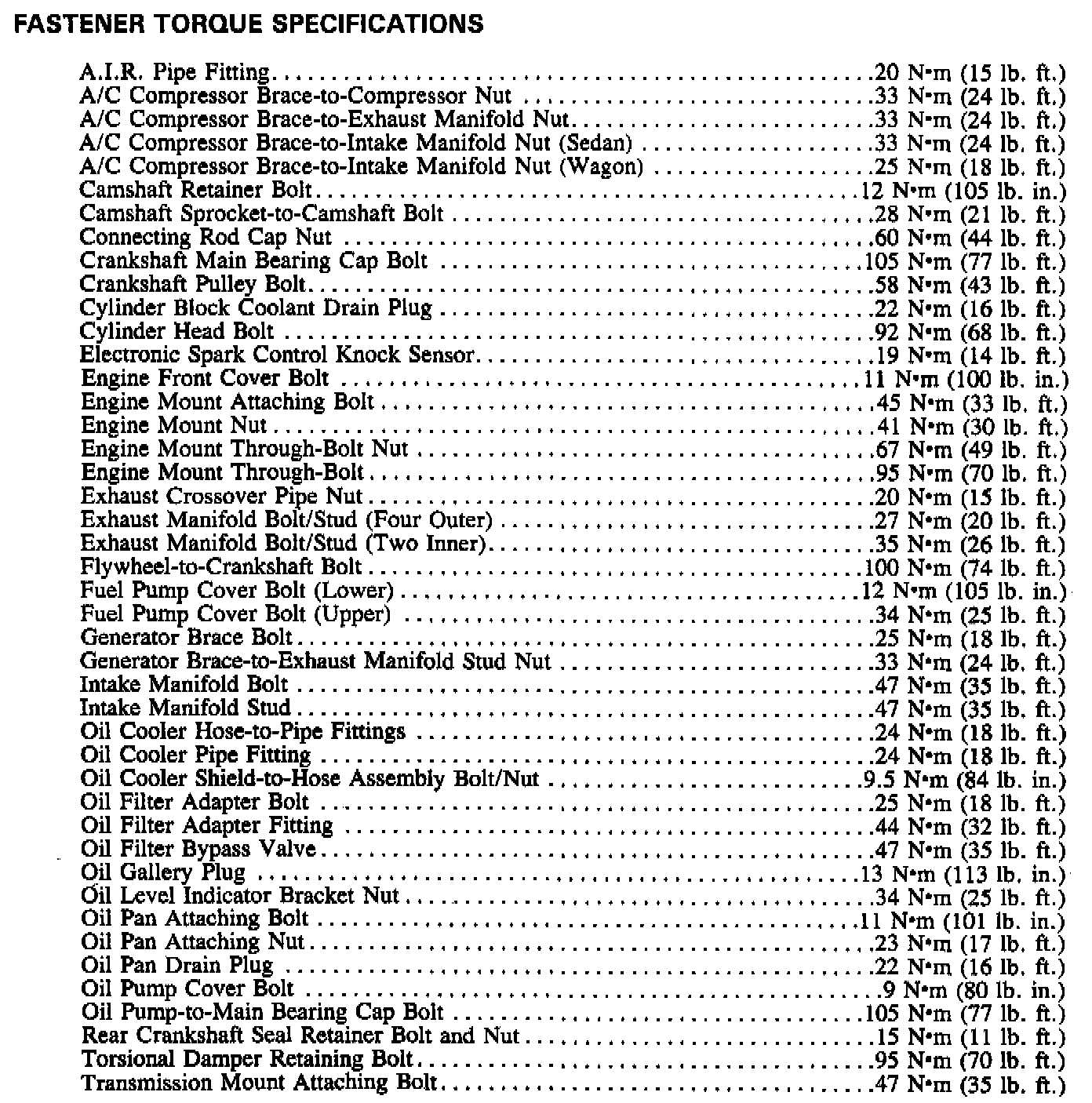 Torque Specifications (continued):