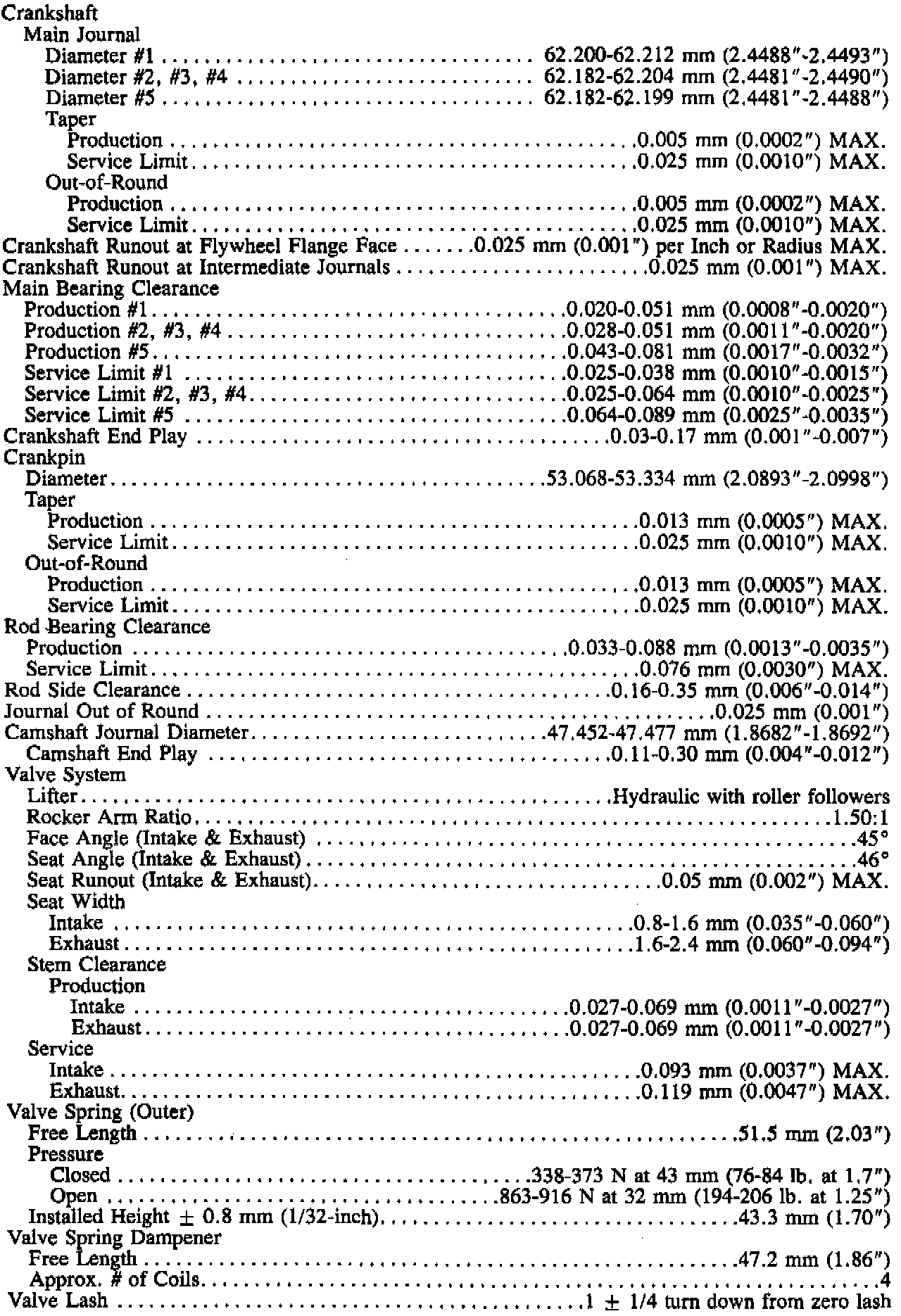 General Engine Specifications (continued):