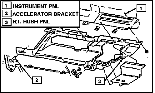 22. Pull instrument panel forward and disconnect speedometer cable, then remove panel. On vehicles equipped with digital instrument cluster, the Vehicle Speed Sensor (VSS) buffer must be disconnected.