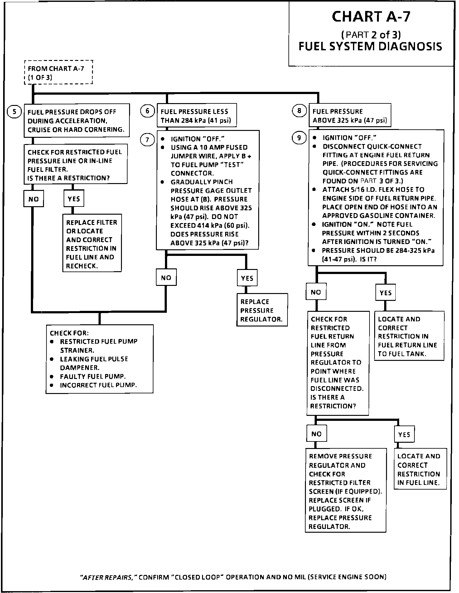9. This test determines if the high fuel pressure is due to a restricted fuel return line or a faulty fuel pressure regulator.
