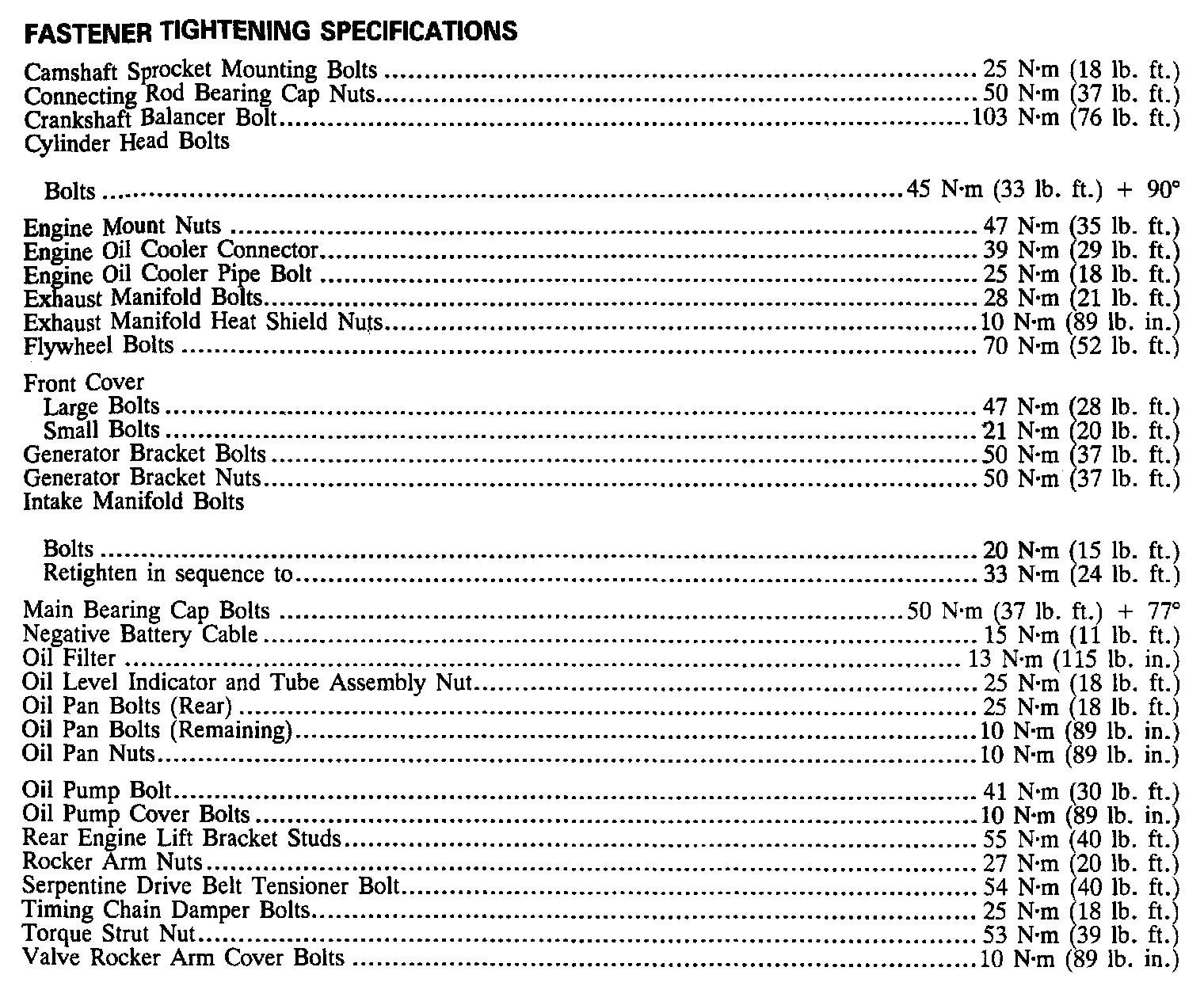 Torque Specifications: